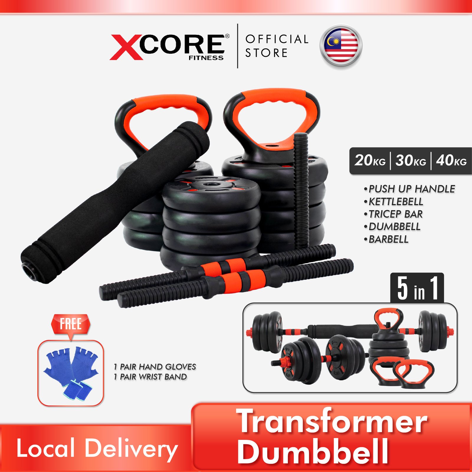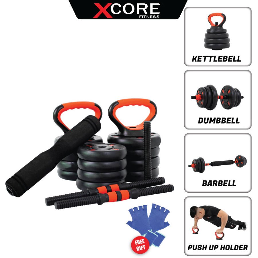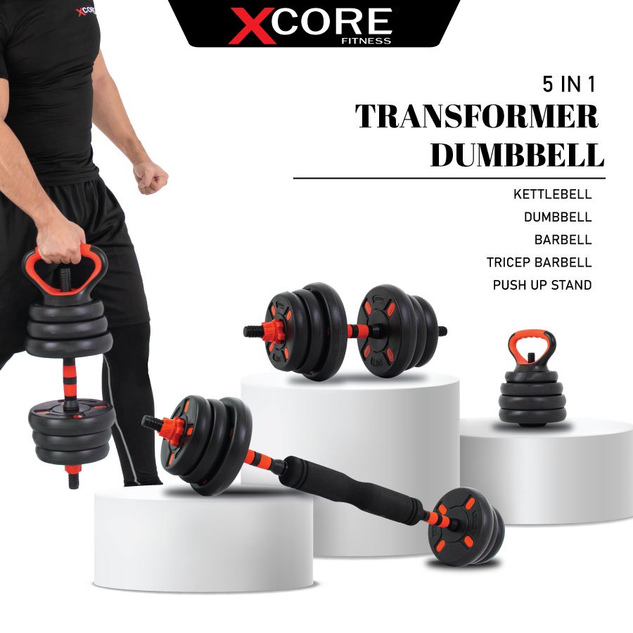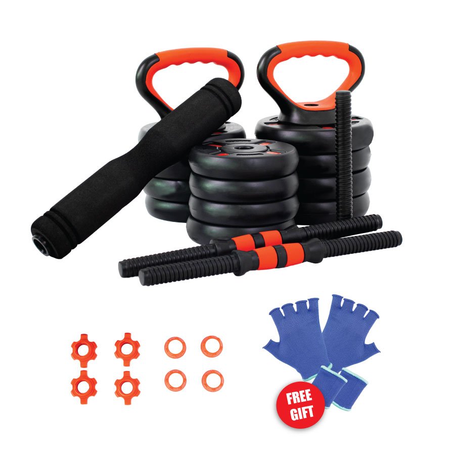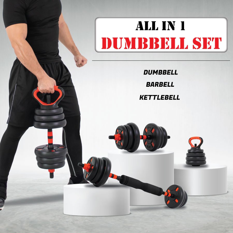 Easily transforms into a dumbbell, barbell, kettlebell, triceps bar, or push-up handle — allowing for complete full-body workouts.