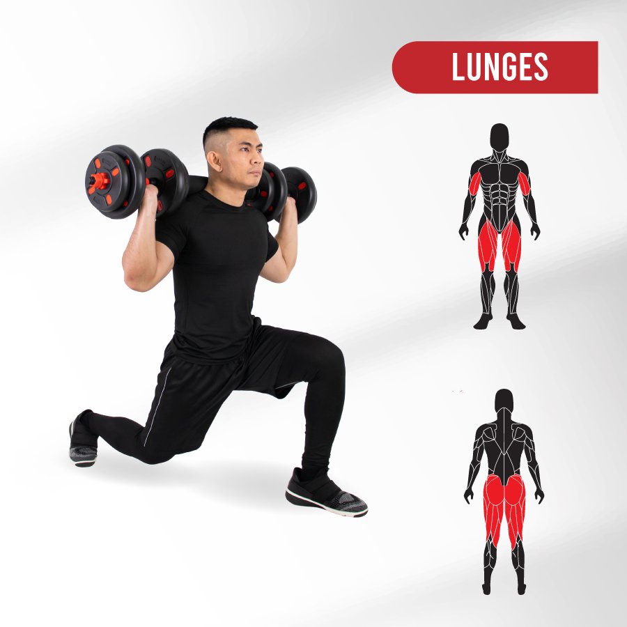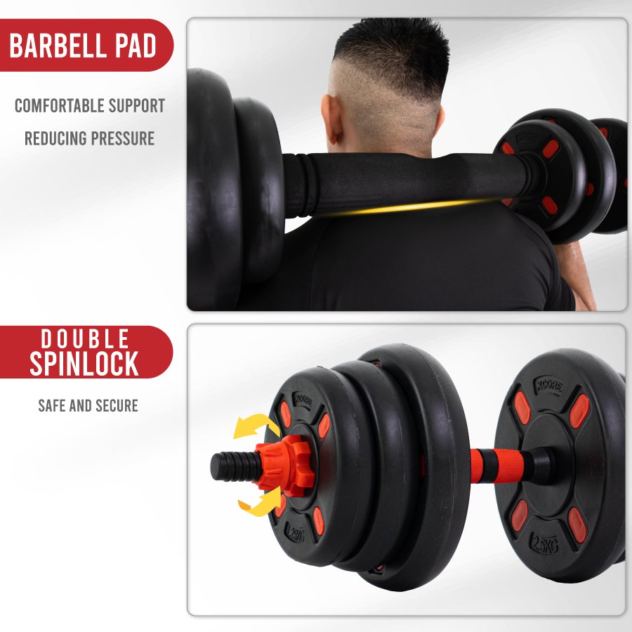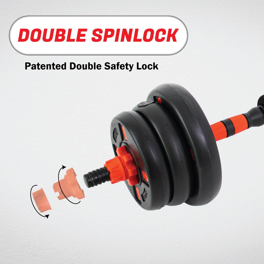 Connects both dumbbells using the central bar for squats, deadlifts, and lunges.