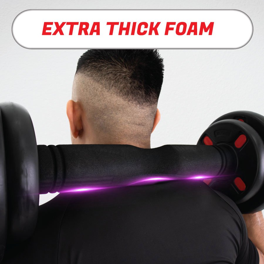 Soft foam padding offers comfort and reduces pressure on the neck and shoulders during barbell exercises.