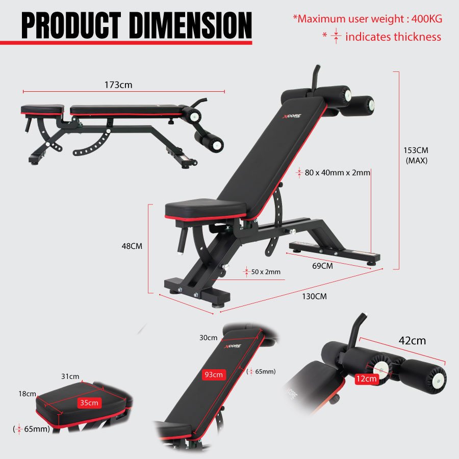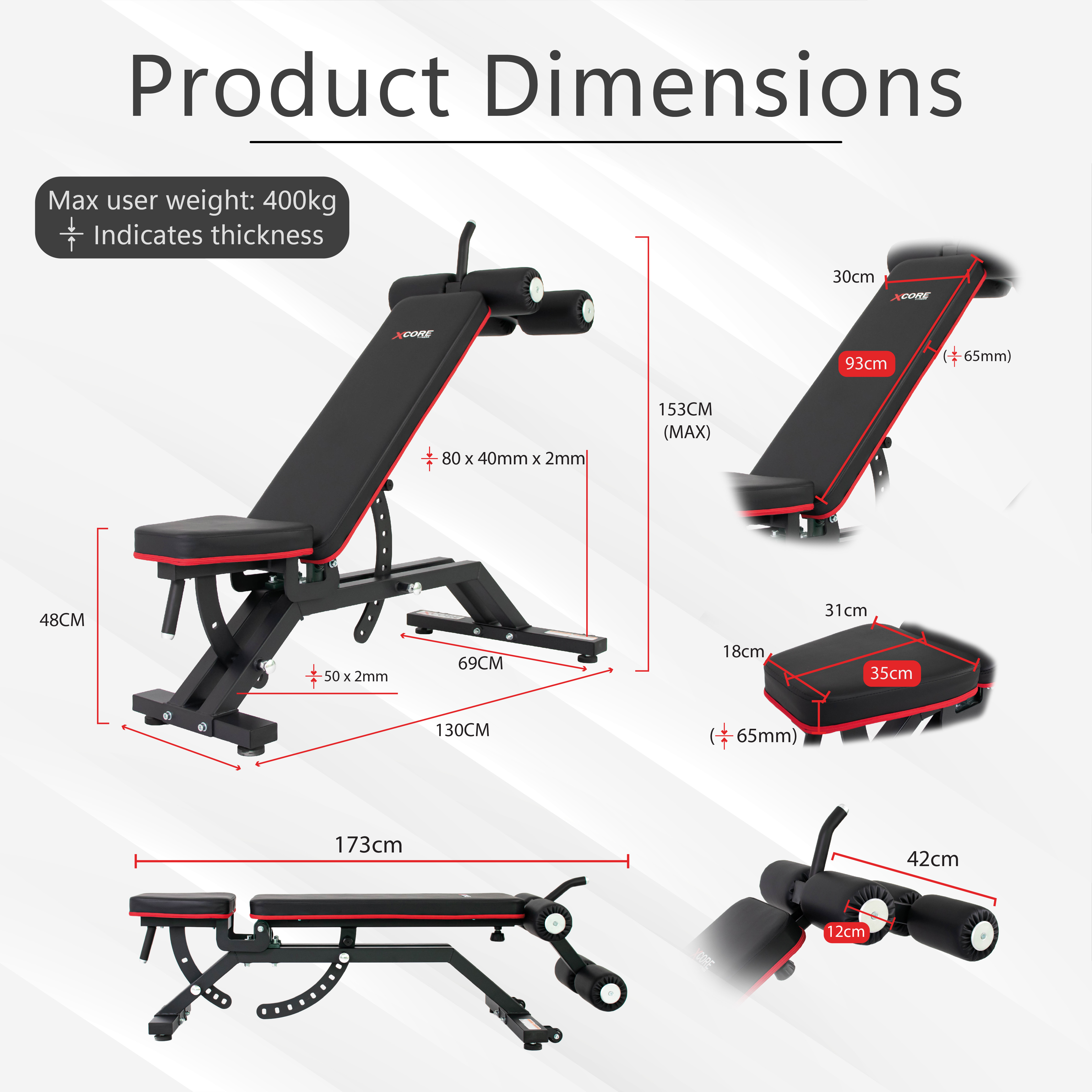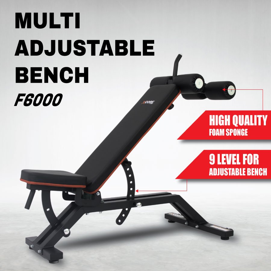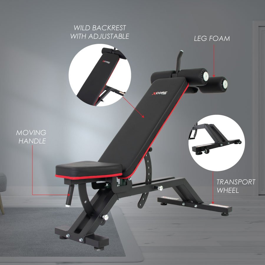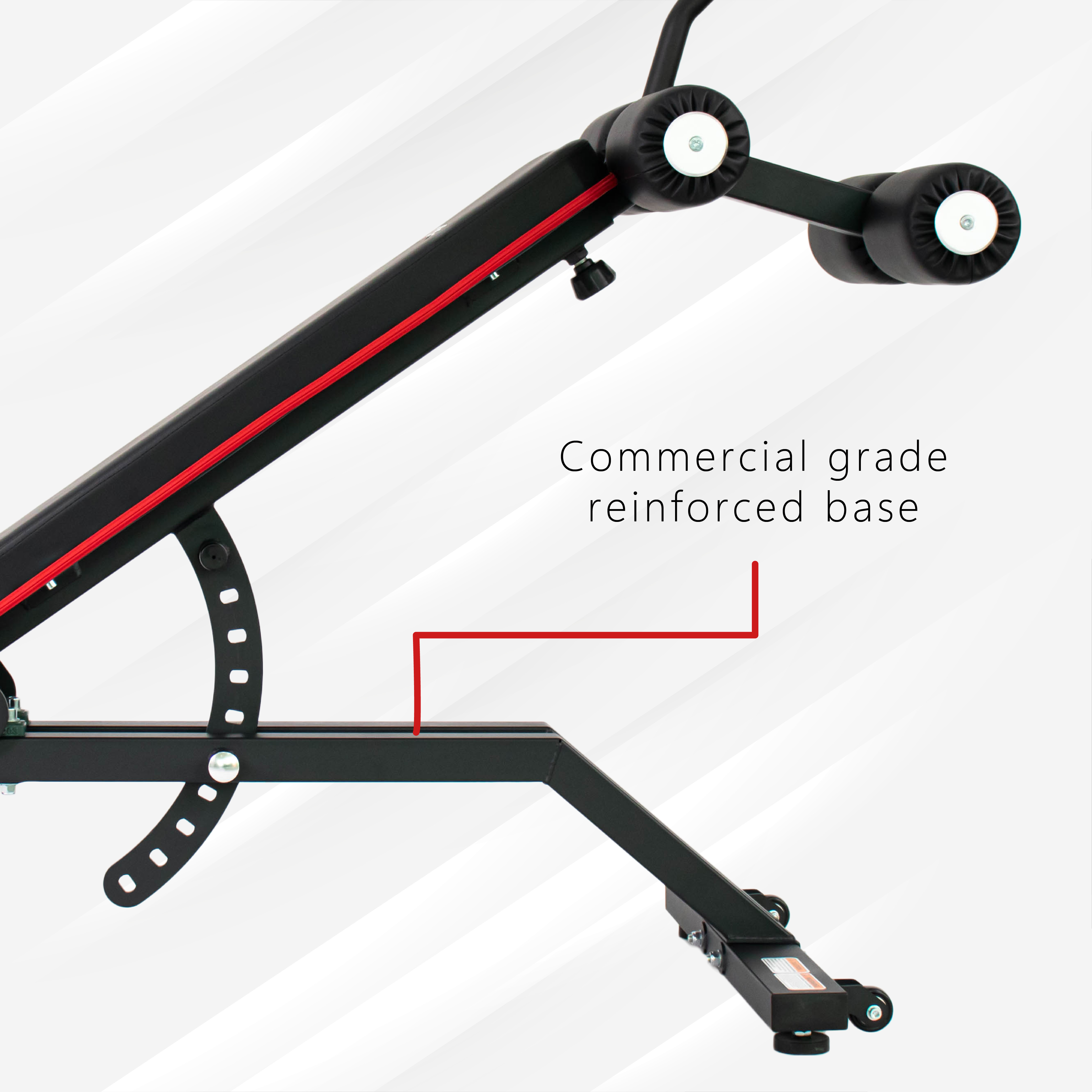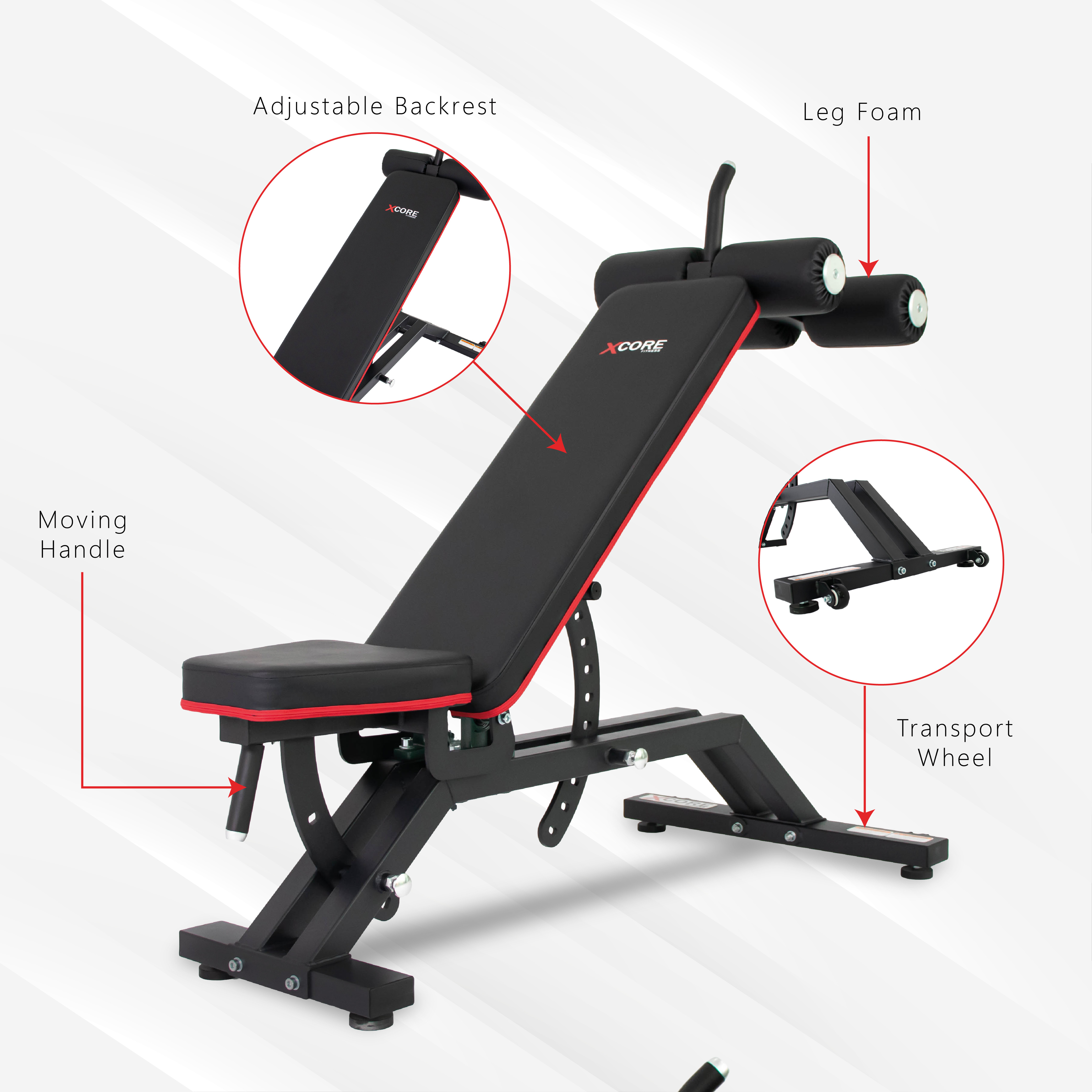 Commercial-grade bench with 9 backrest levels, 5 seat positions, and reinforced stability for full-range strength training