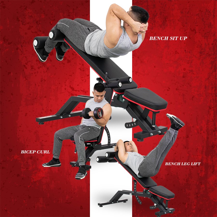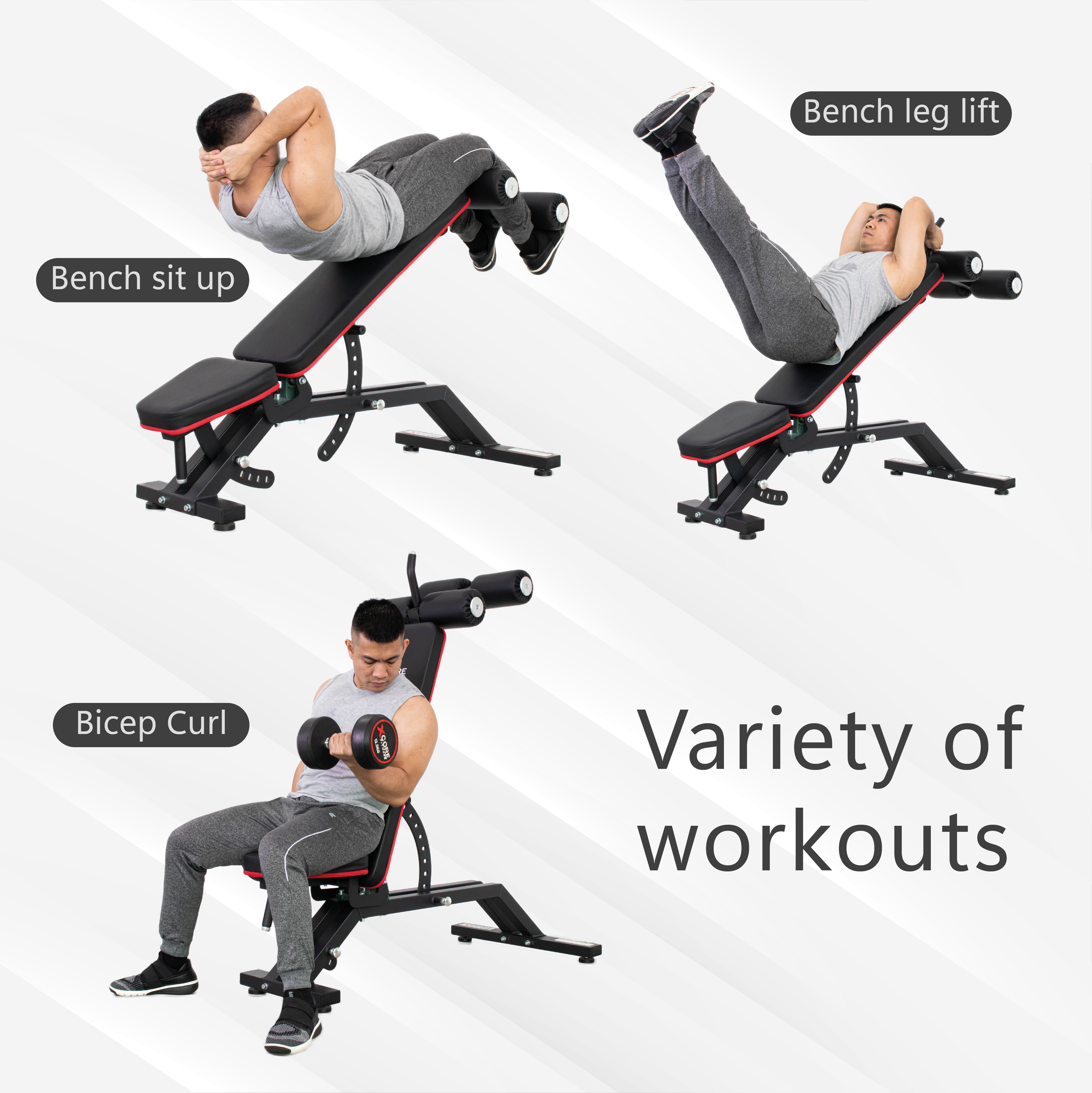 Supports a wide variety of exercises — including bench press, sit-up, leg lift, and bicep curl.