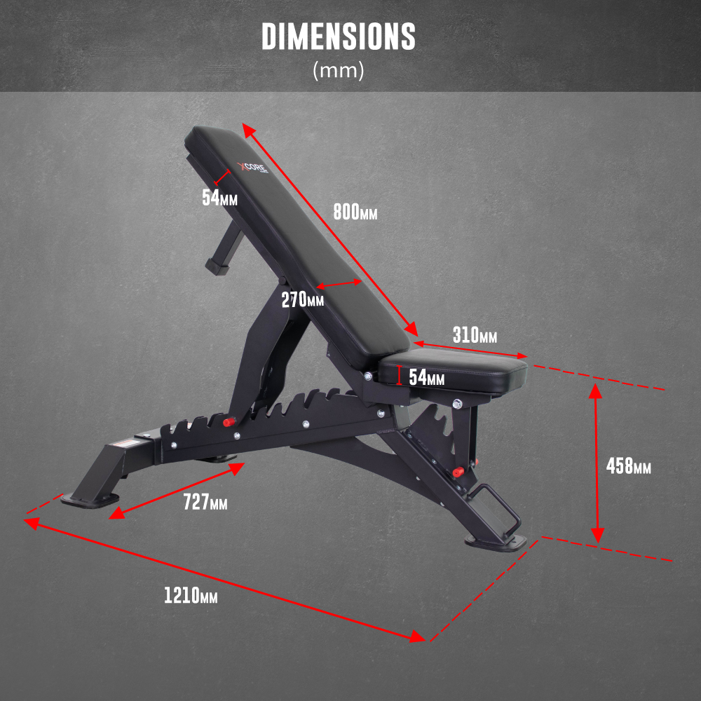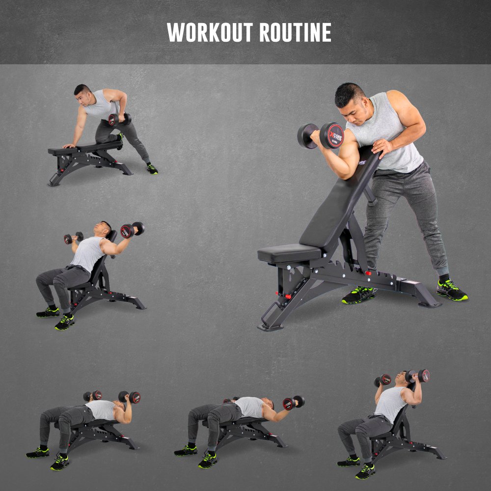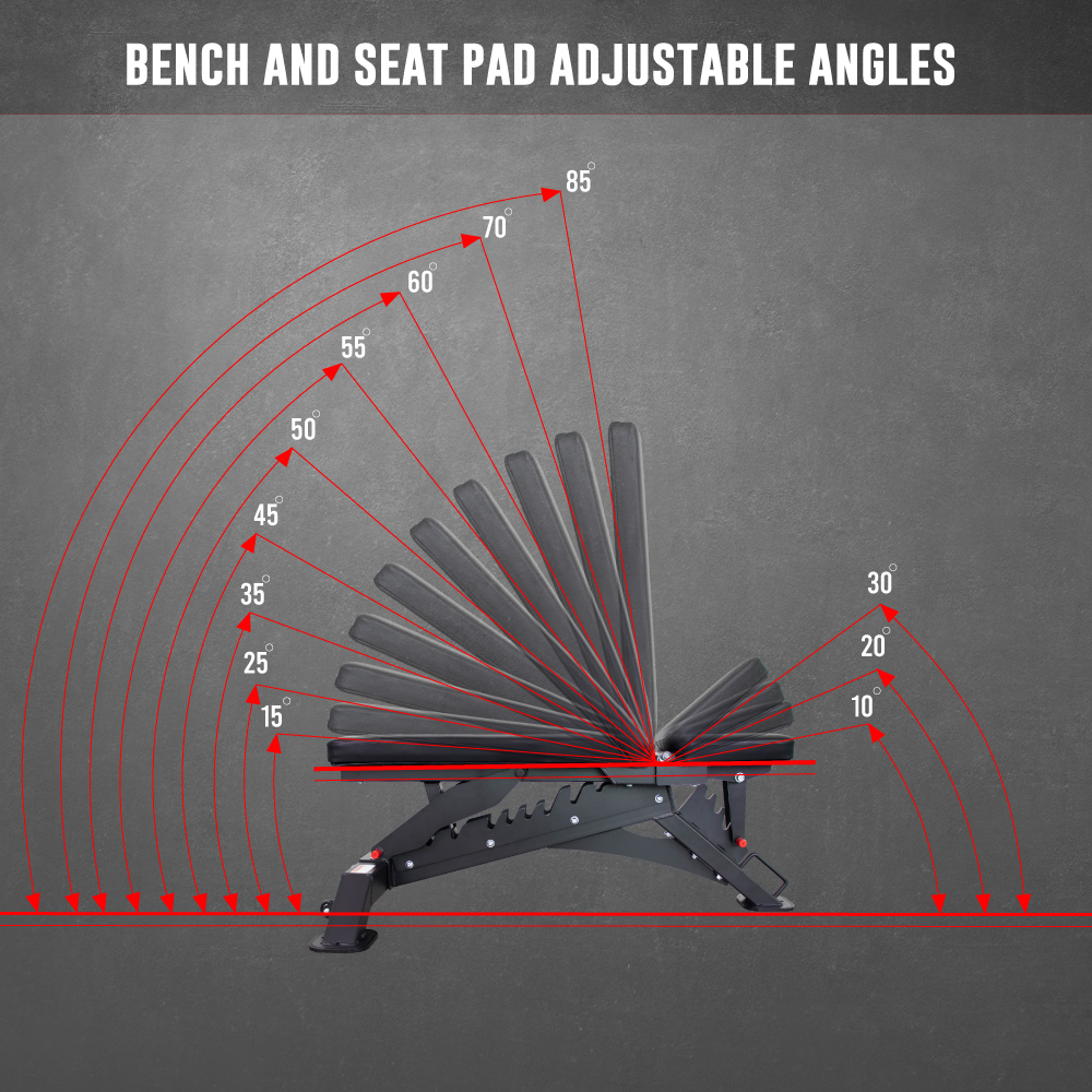 Wide range of angles supports flat, incline, and upright exercises for full-body training.