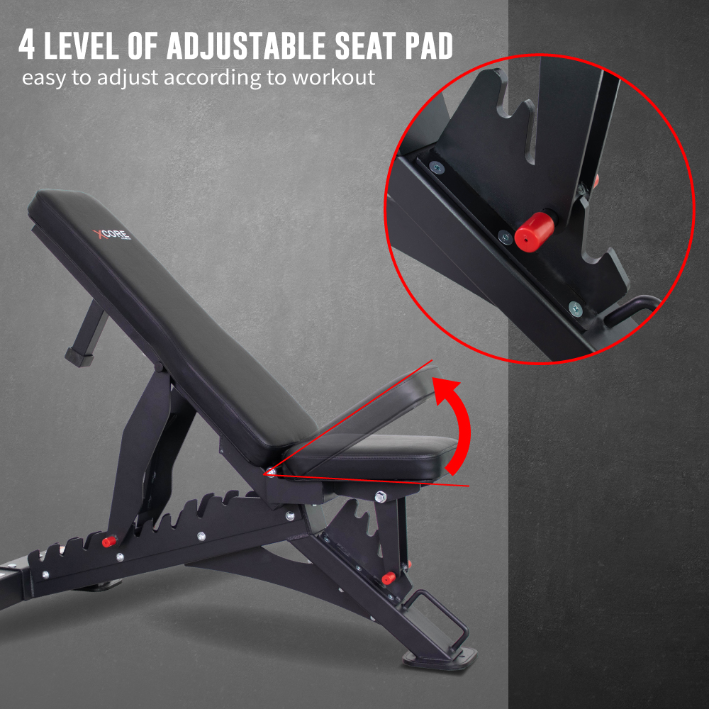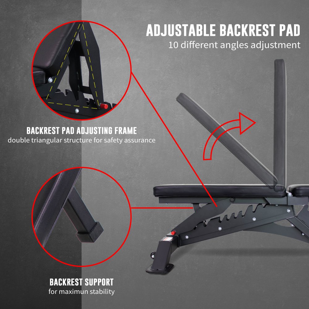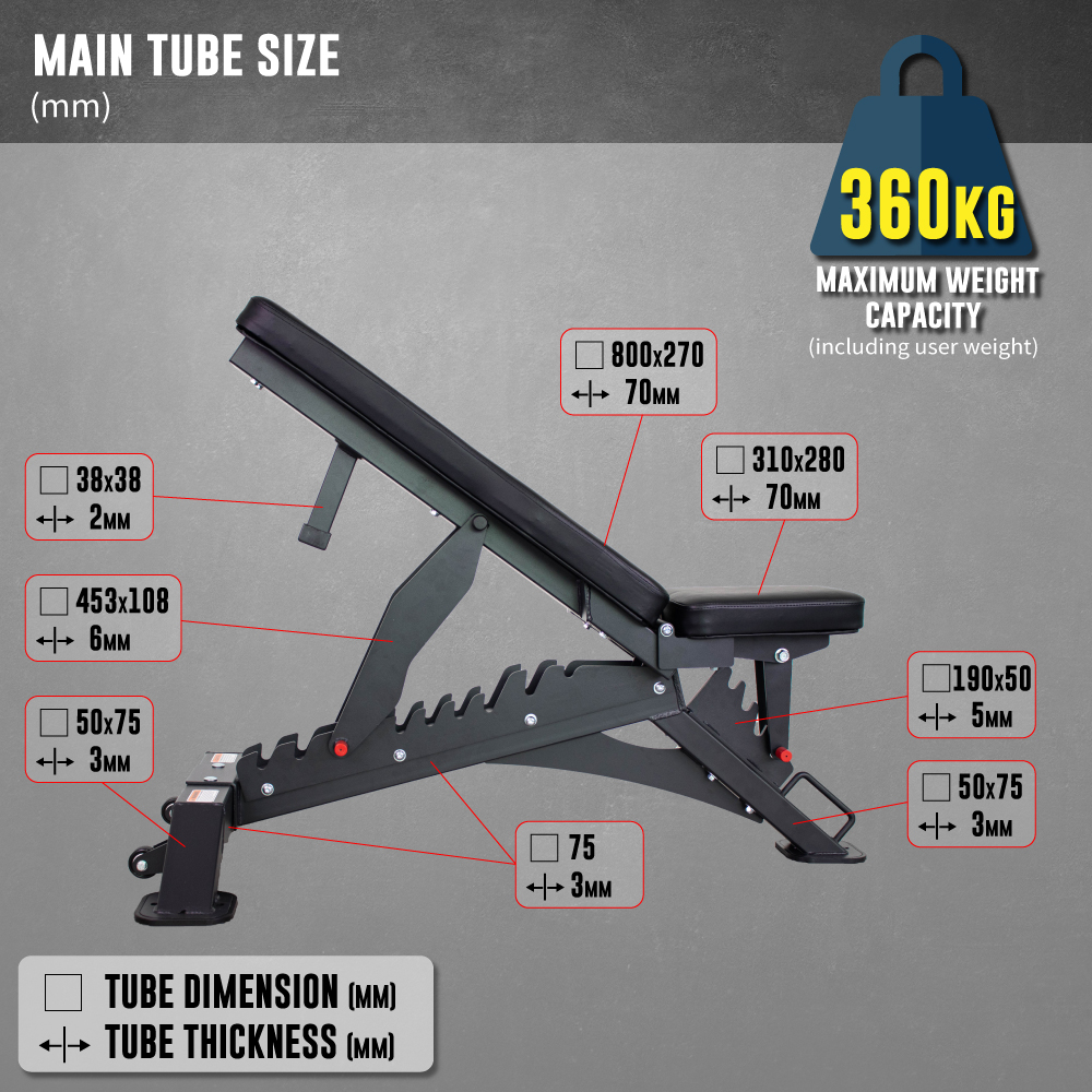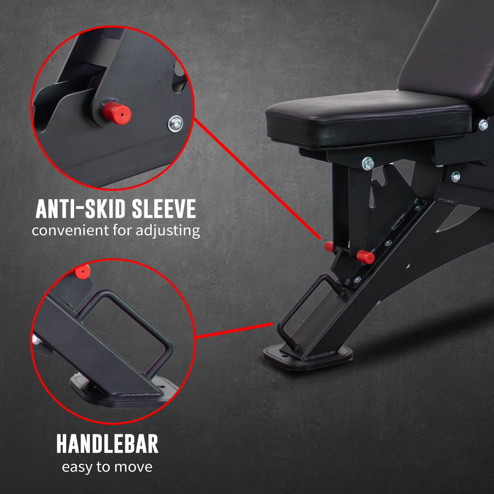 Wide range of angles supports flat, incline, and upright exercises for full-body training.