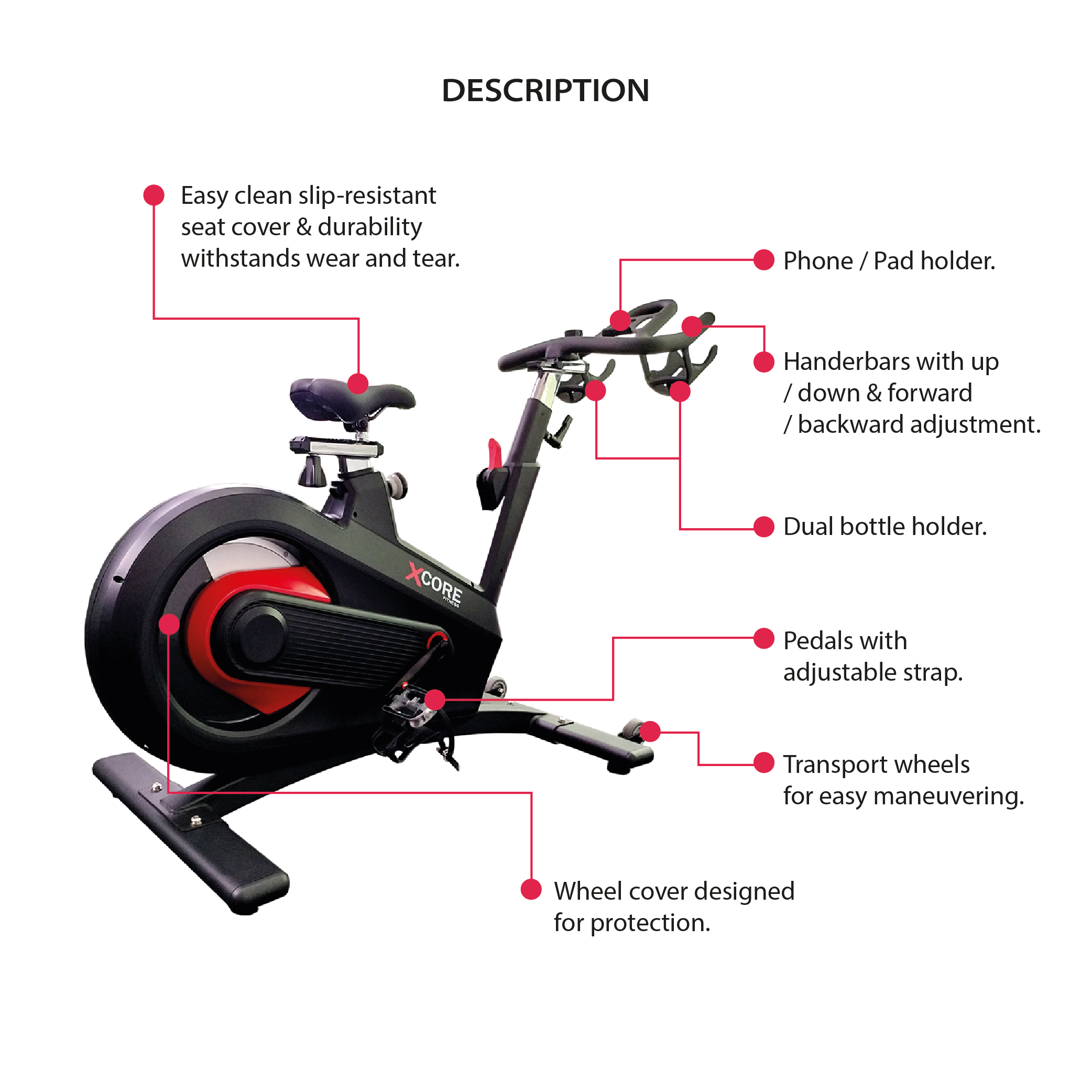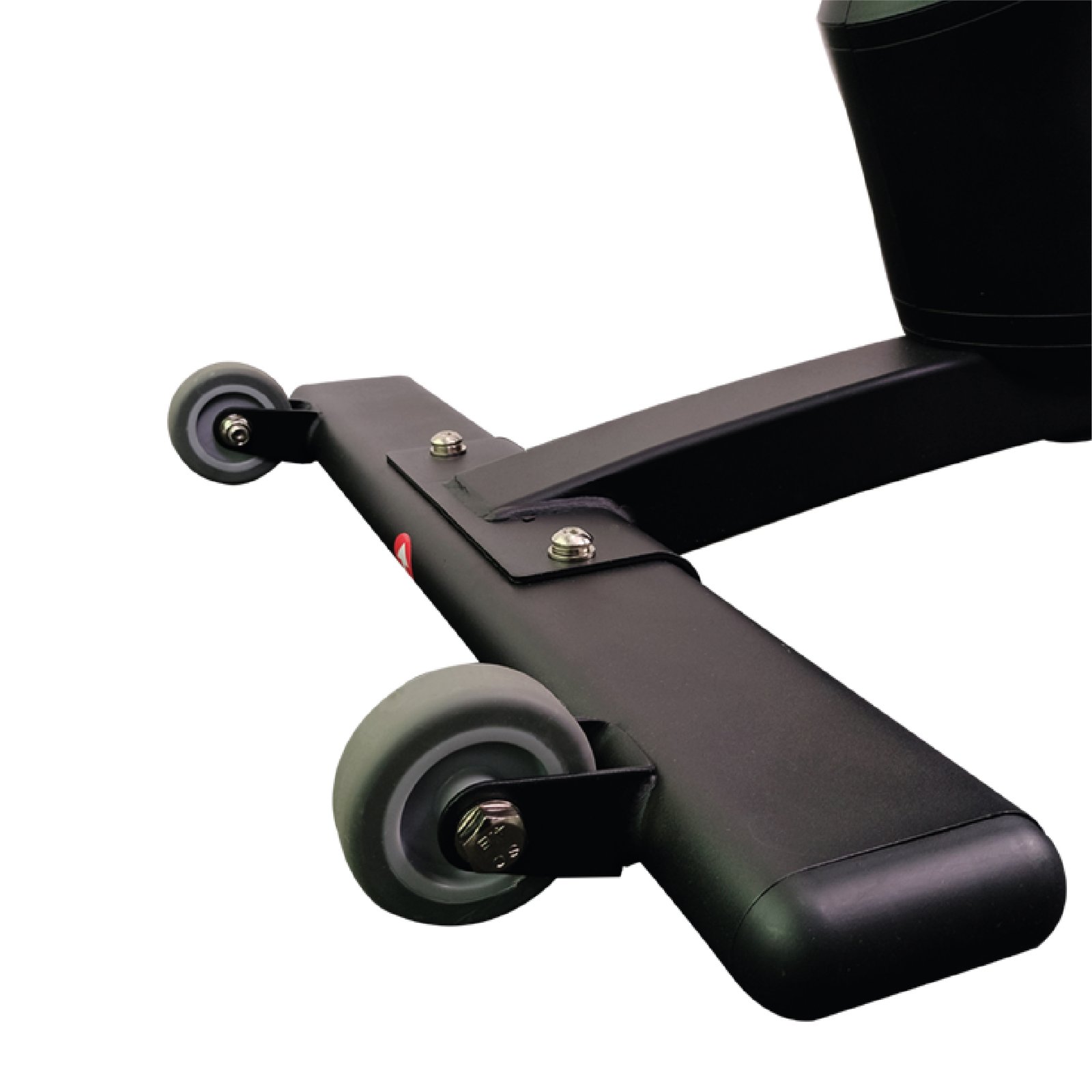 Includes a dual bottle holder, transport wheels for easy movement, and a phone/pad holder for entertainment or tracking workouts.