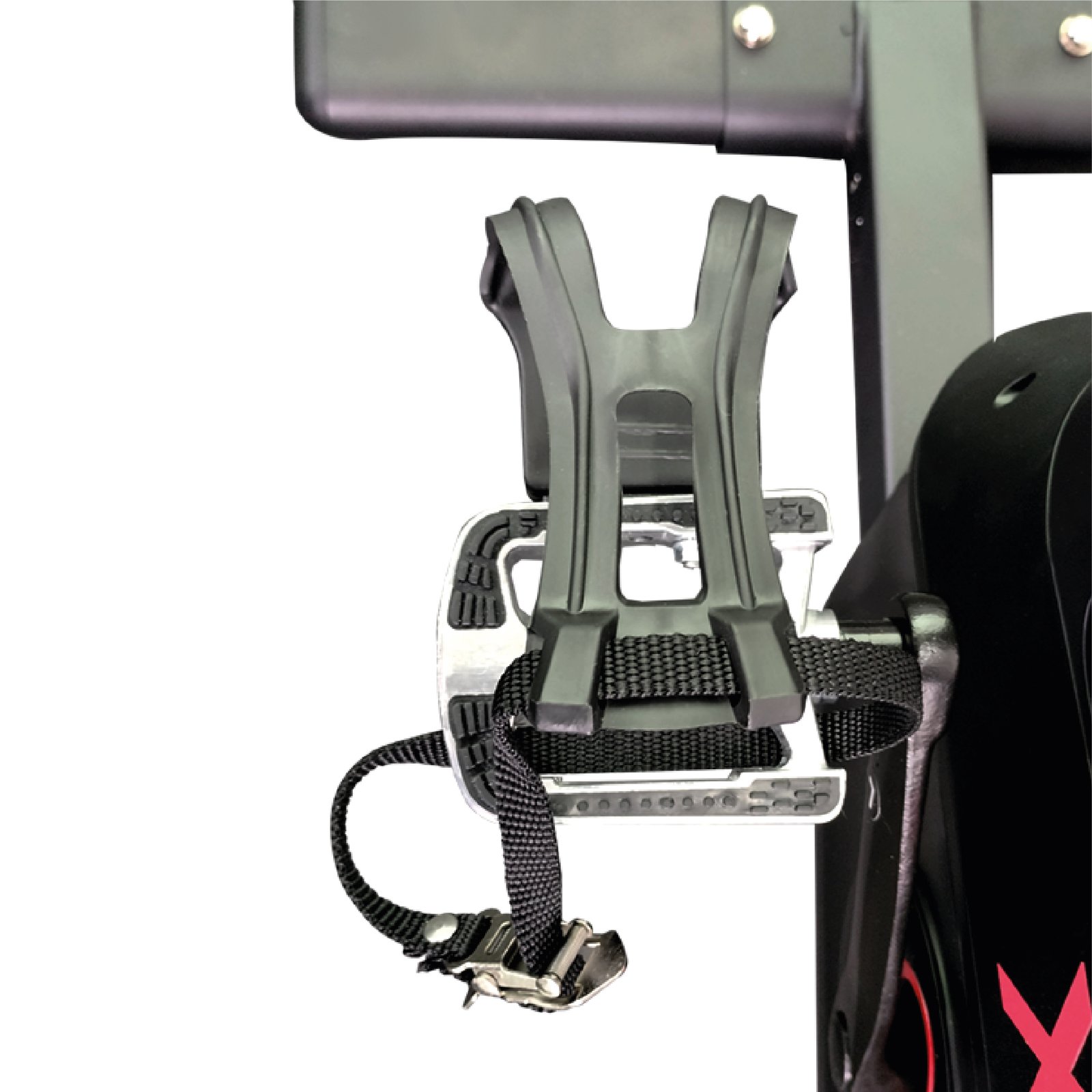 Features a wheel cover for added protection and secure pedaling with adjustable straps.