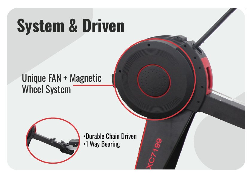 Combines fan resistance with magnetic control for a smooth, adjustable, and realistic rowing feel.
