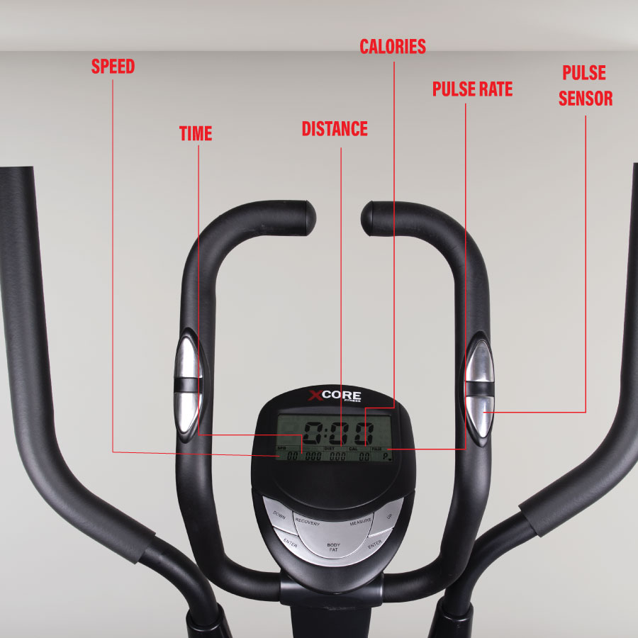 Built-in hand pulse sensors monitor heart rate for safe and efficient training.