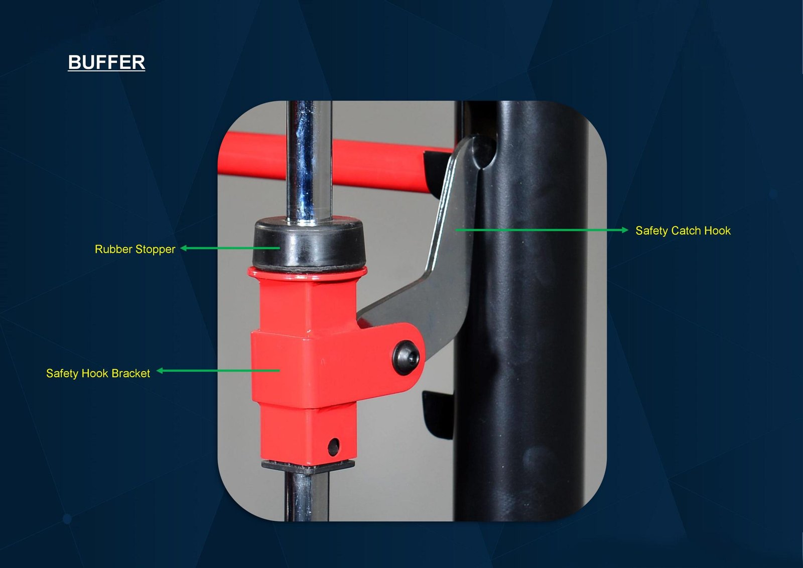 Features rubber stoppers, safety hook brackets, and catch hooks for reliable and secure lifting.