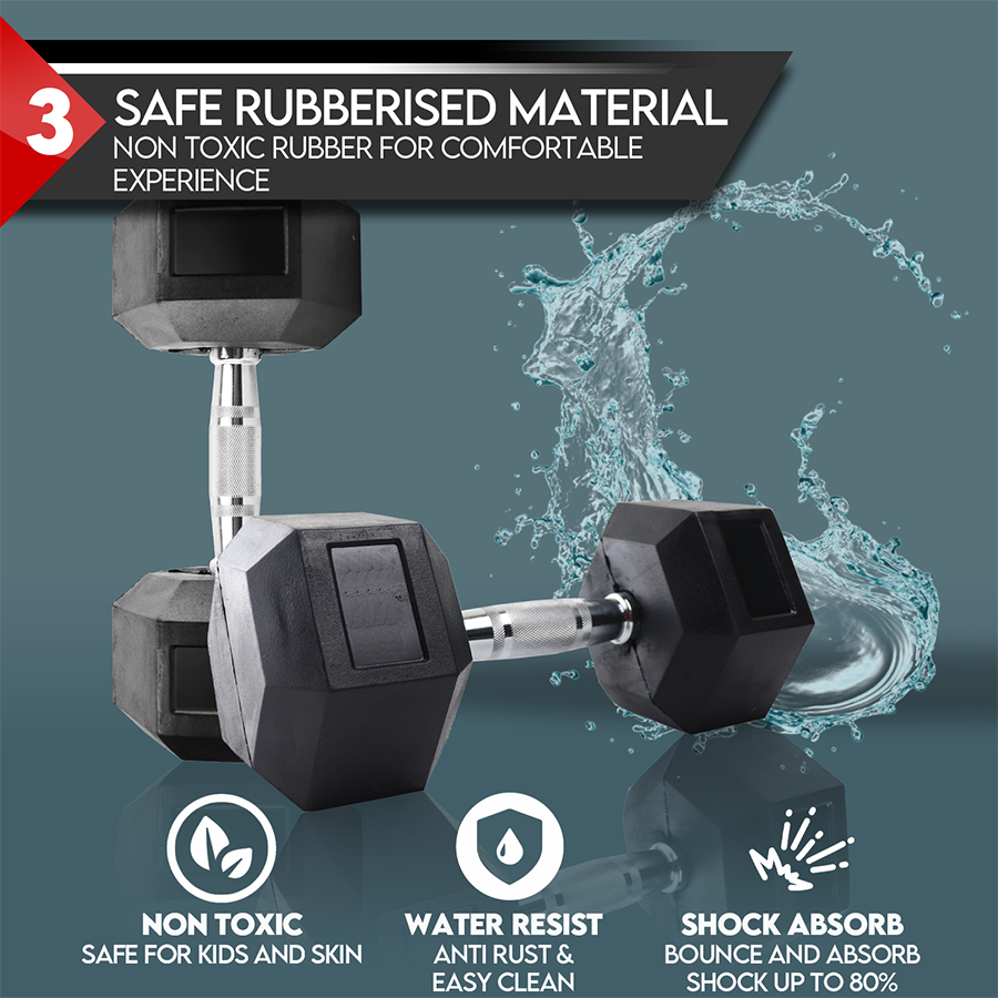 Provides excellent shock absorption, is water-resistant, anti-skid, and anti-rust — keeping your dumbbells safe and floor-friendly.
