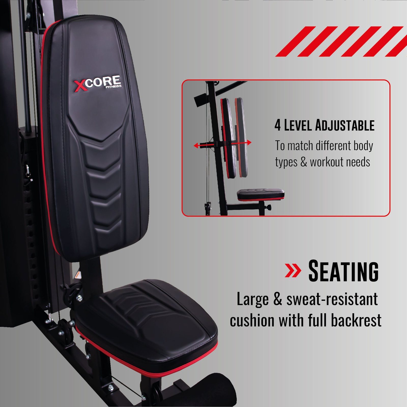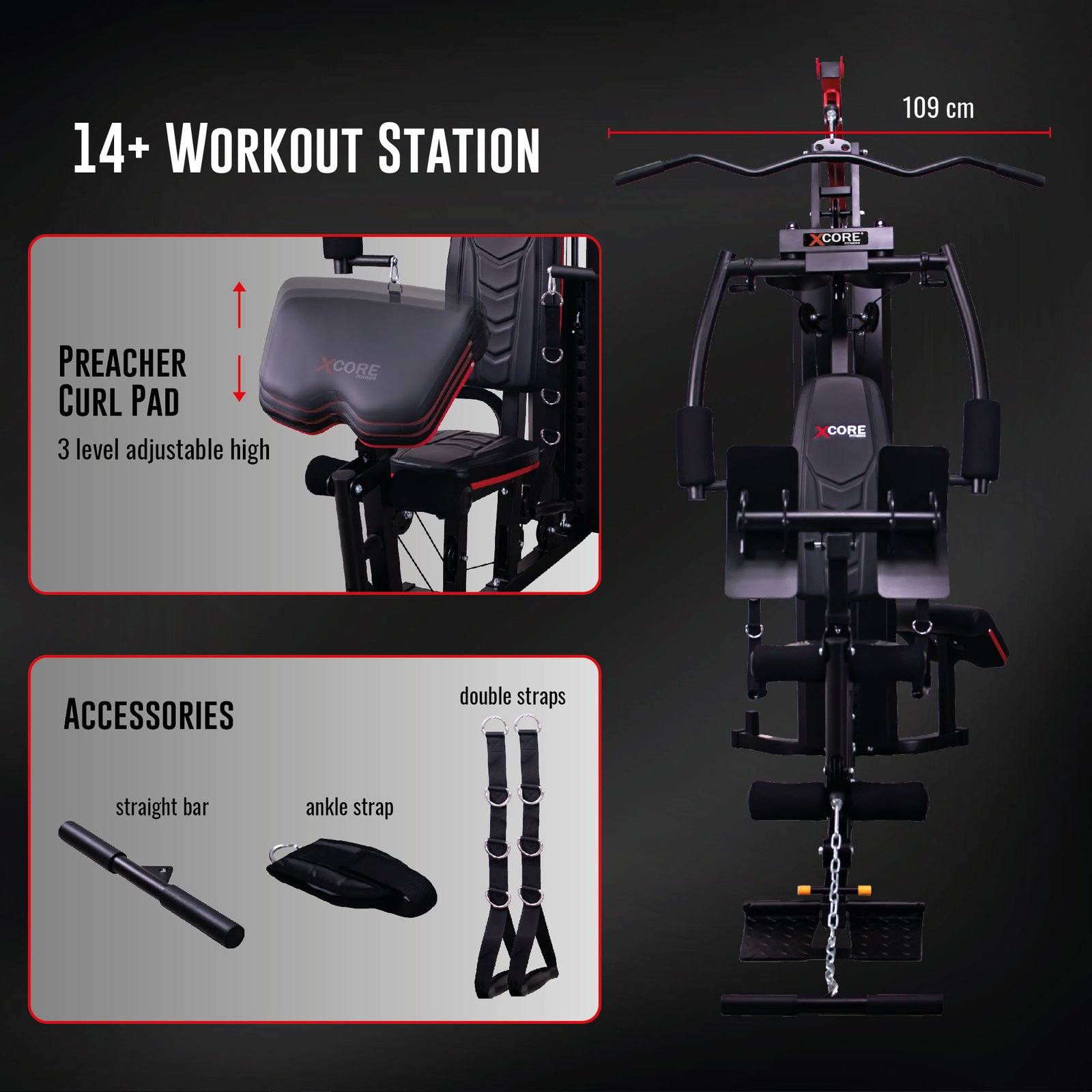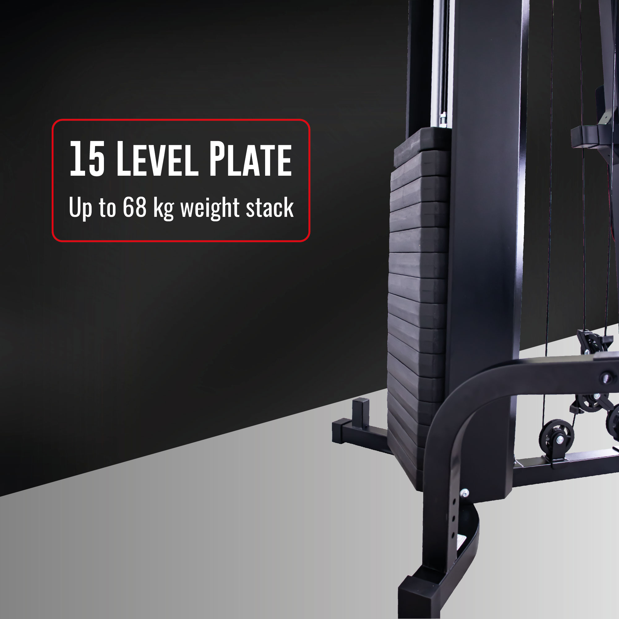 68kg (148lbs) total – (14×10lb + 1×8lb) – supports progressive resistance training.