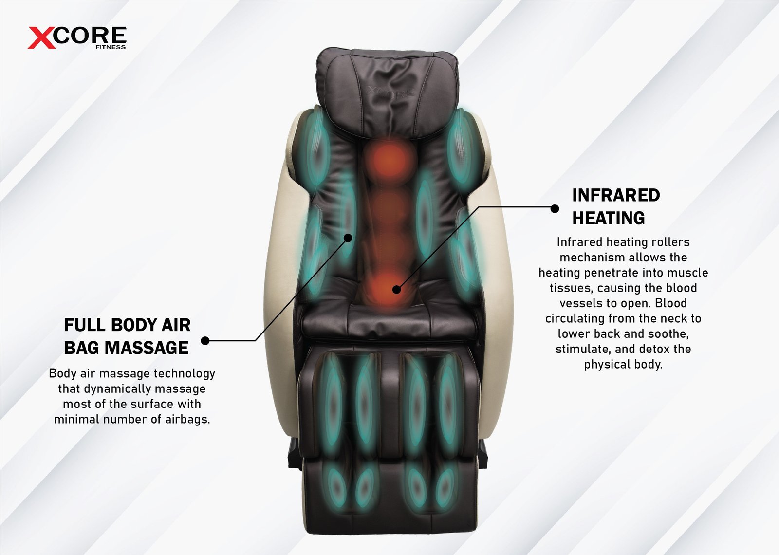 Gentle infrared heat helps relieve muscle tension and enhance blood circulation.