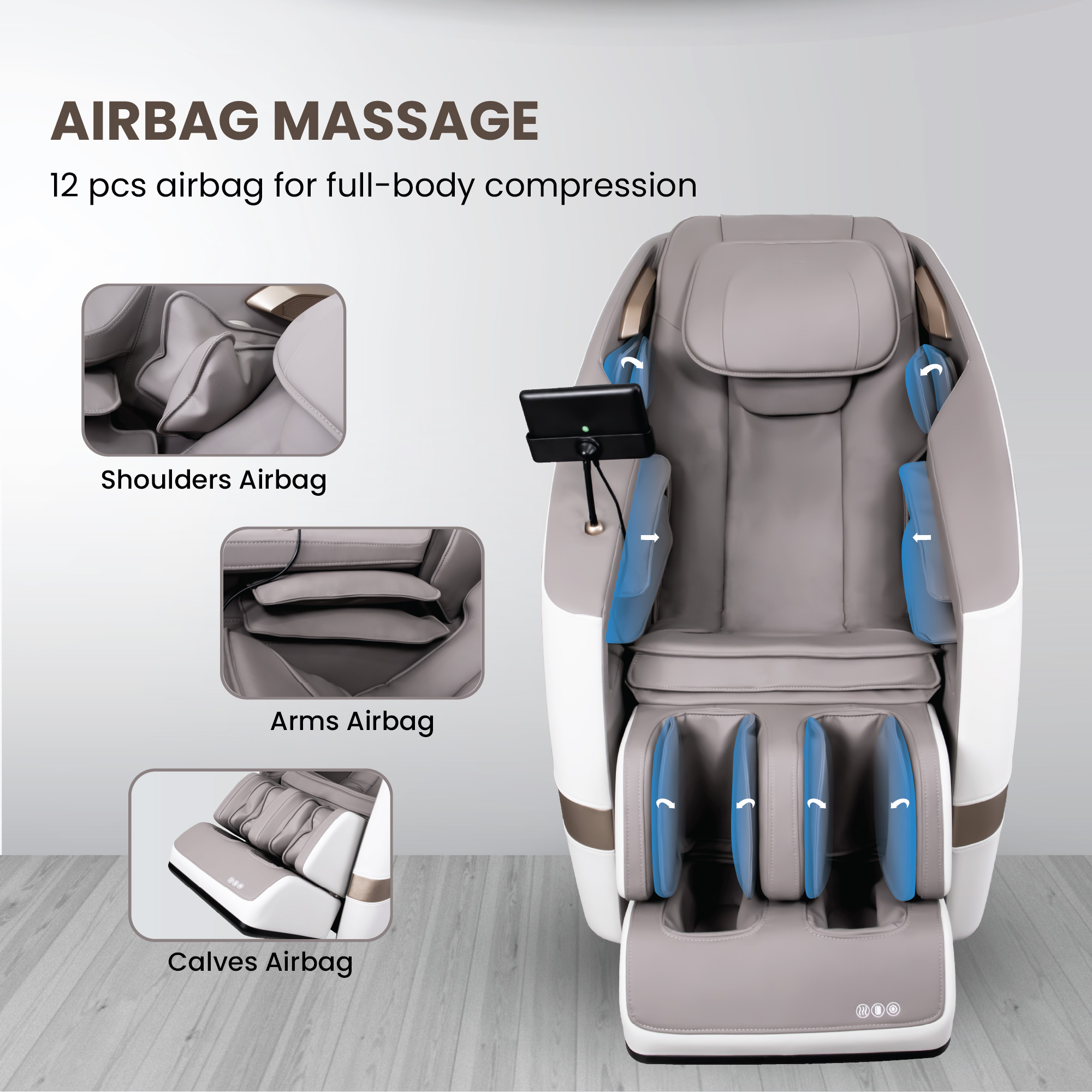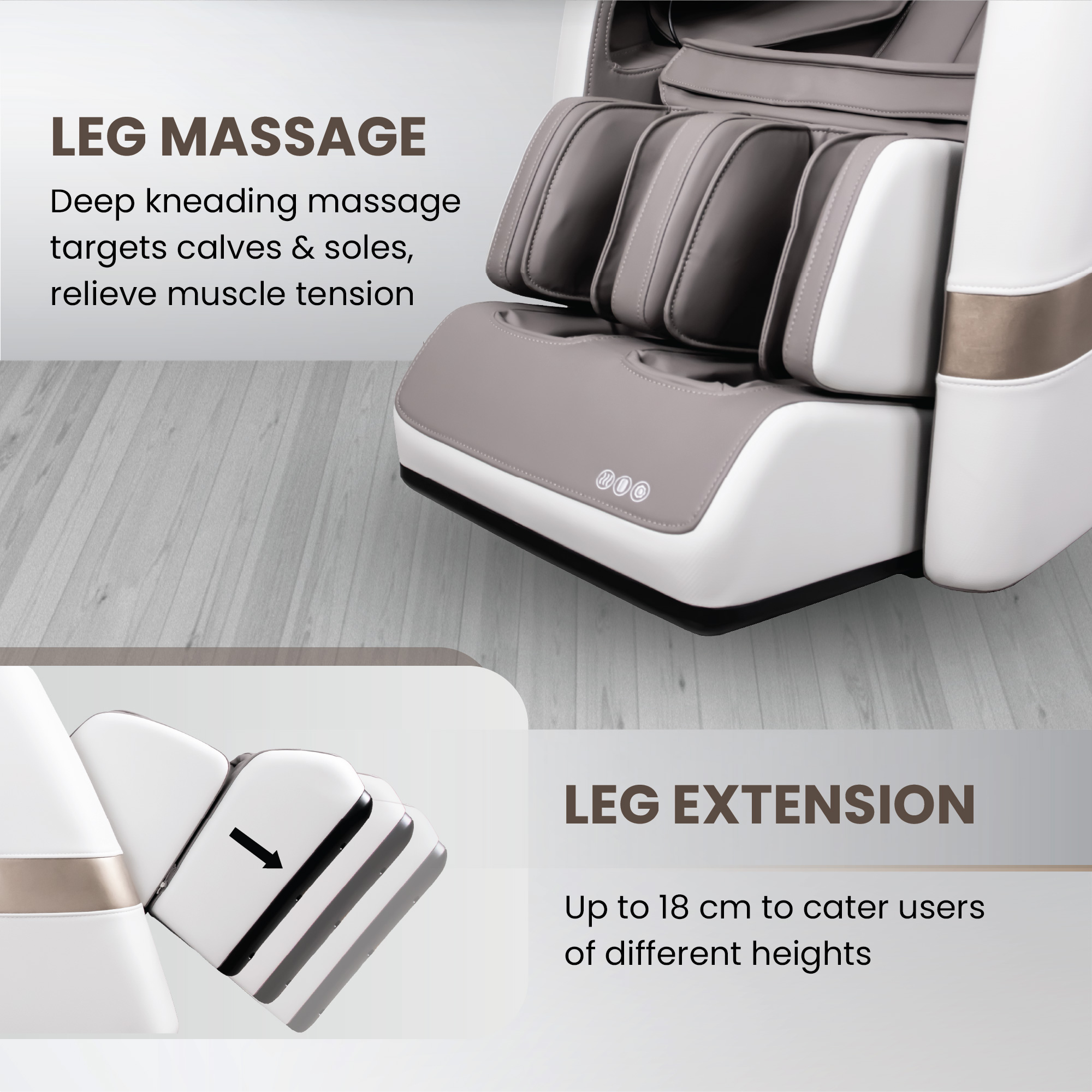 Advanced massage rollers, airbag massage, and leg massage with extension function for total relaxation.