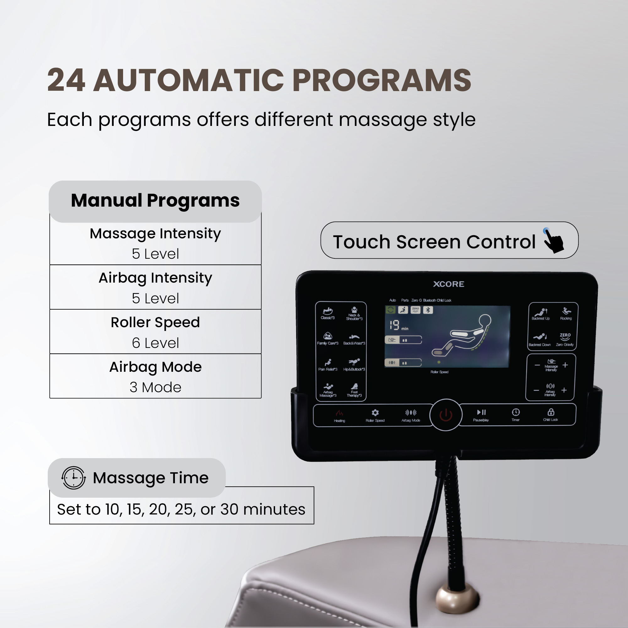 24 automatic massage programs designed for recovery, relaxation, and stress relief.