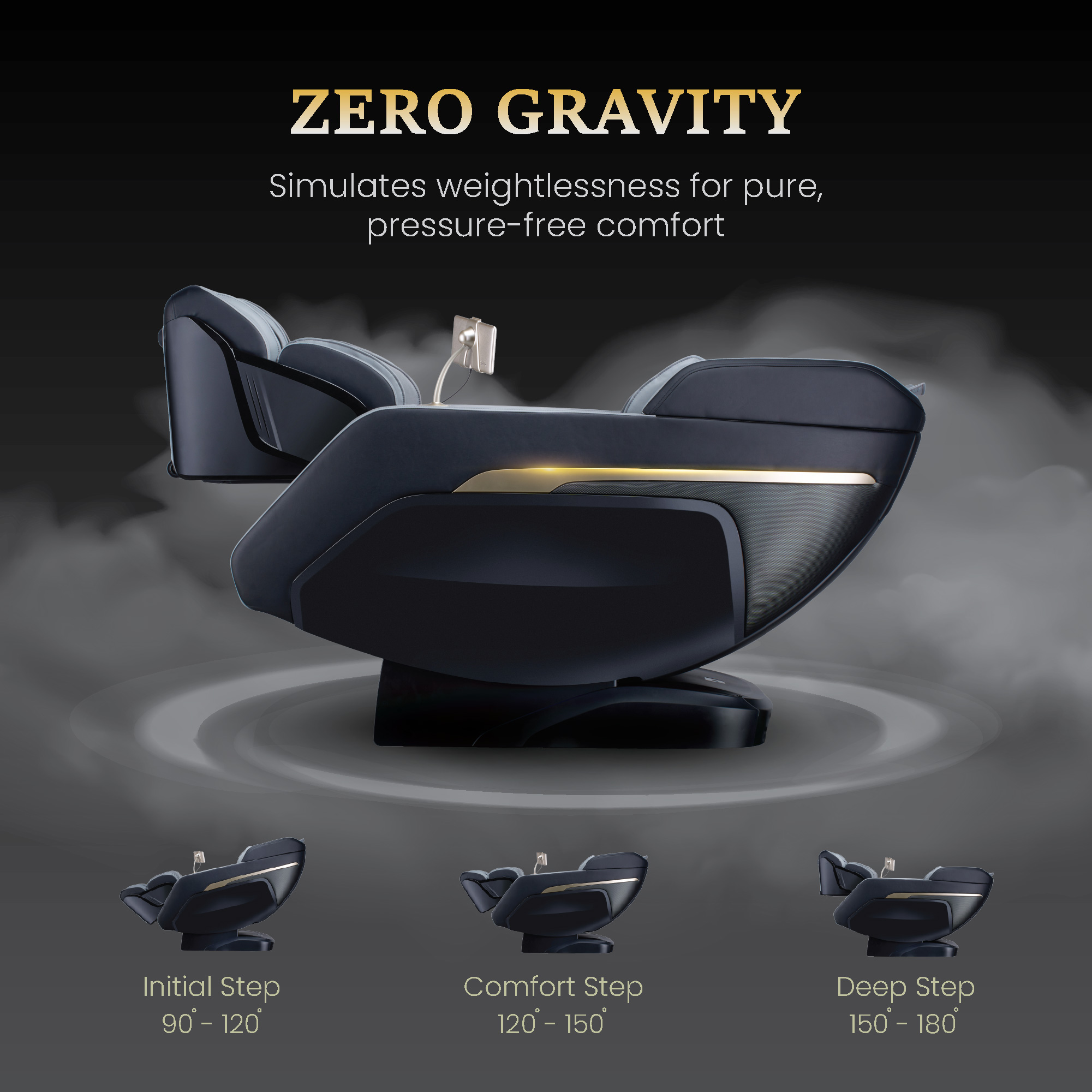 • Comfort Step: 120°–150°