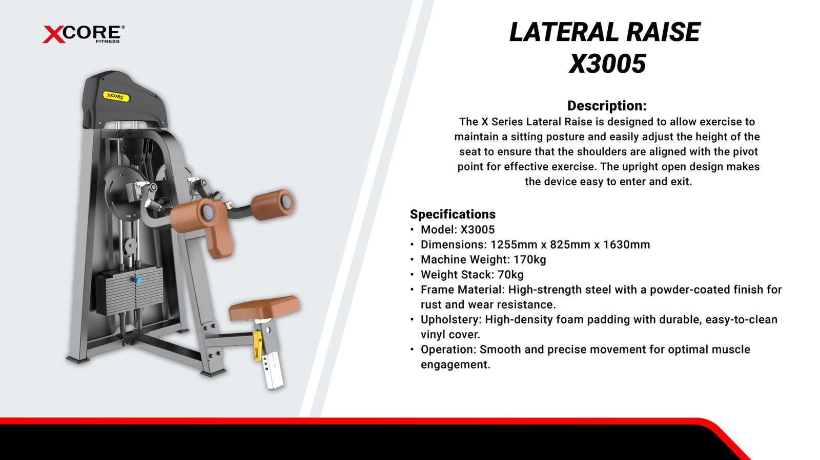 Designed to effectively isolate the lateral deltoids for balanced shoulder development.