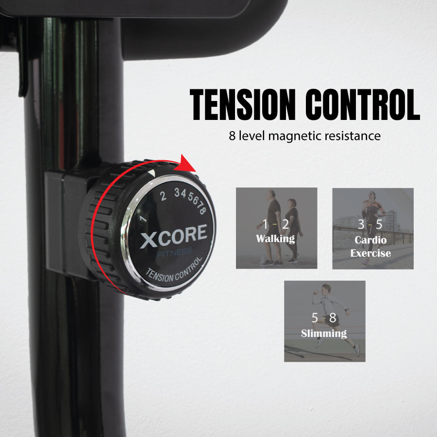 Easily adjustable tension control for varied workout intensity: