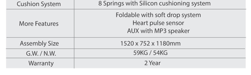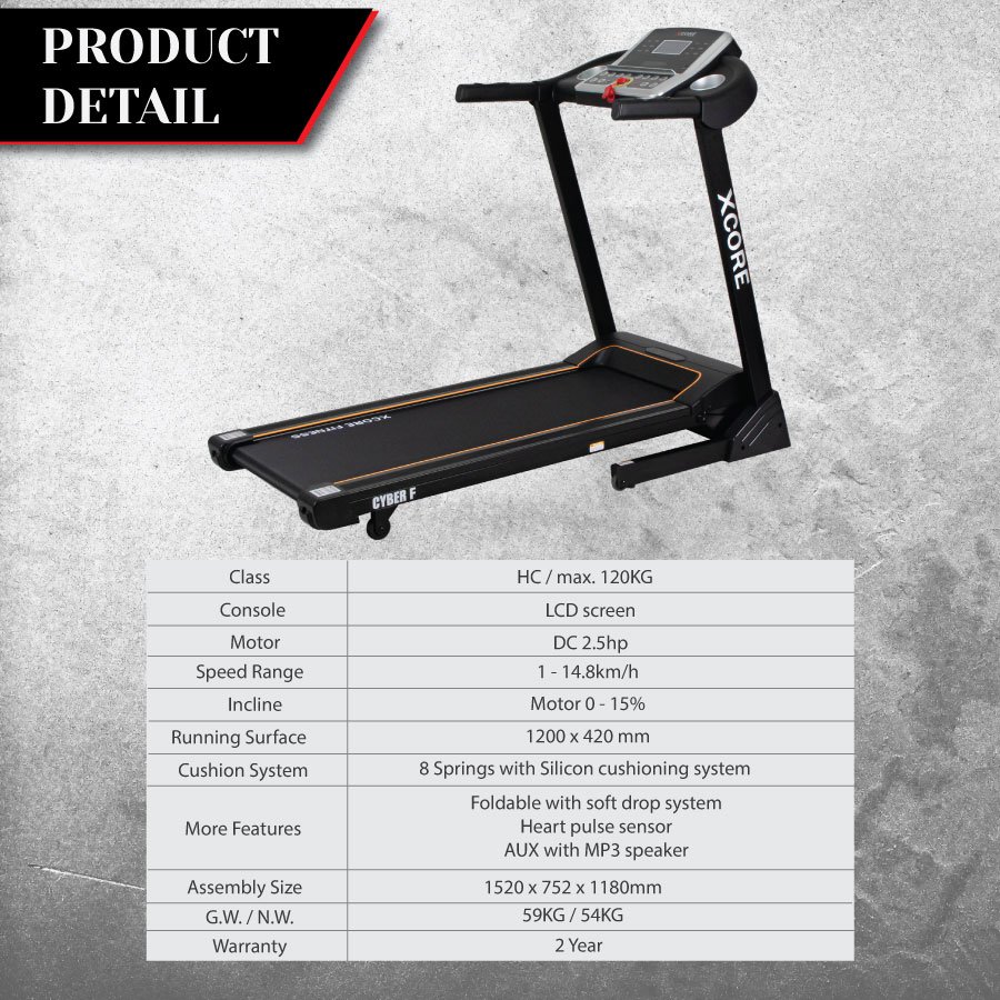 Equipped with a DC 2.5HP motor, delivering smooth performance with speeds from 1 to 14.8 km/h.