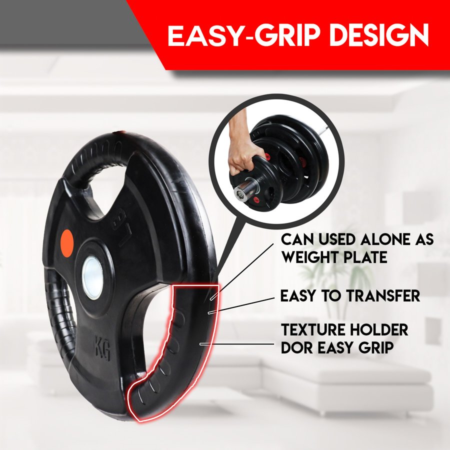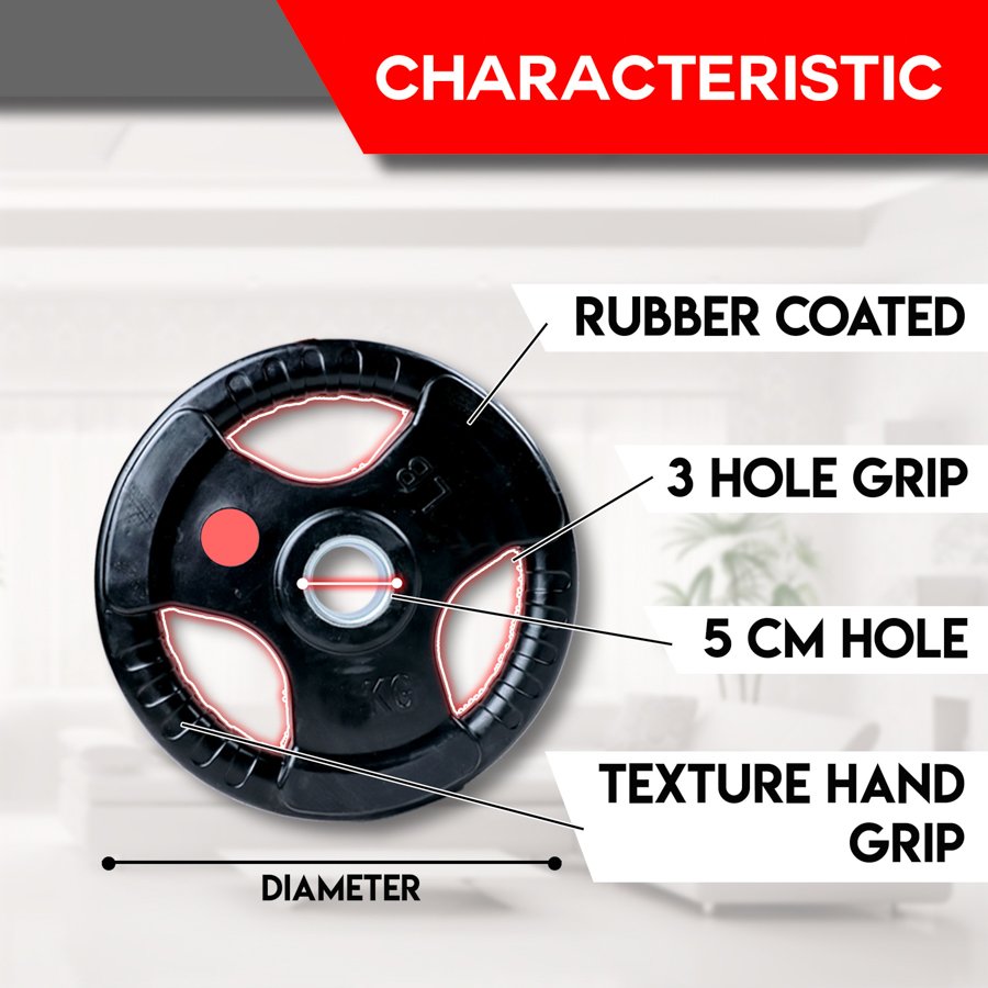 The XCORE Premium Olympic Tri-Grip Rubberised Weight Plate (10kg) offers a perfect balance of durability, comfort, and functionality. Designed with a high-quality rubber coating and ergonomic tri-grip structure, it ensures a secure grip, long-lasting performance, and floor protection — ideal for home and commercial gym use.