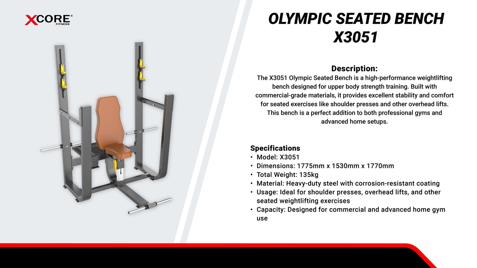 Ideal for shoulder presses, overhead lifts, and other seated weightlifting movements.