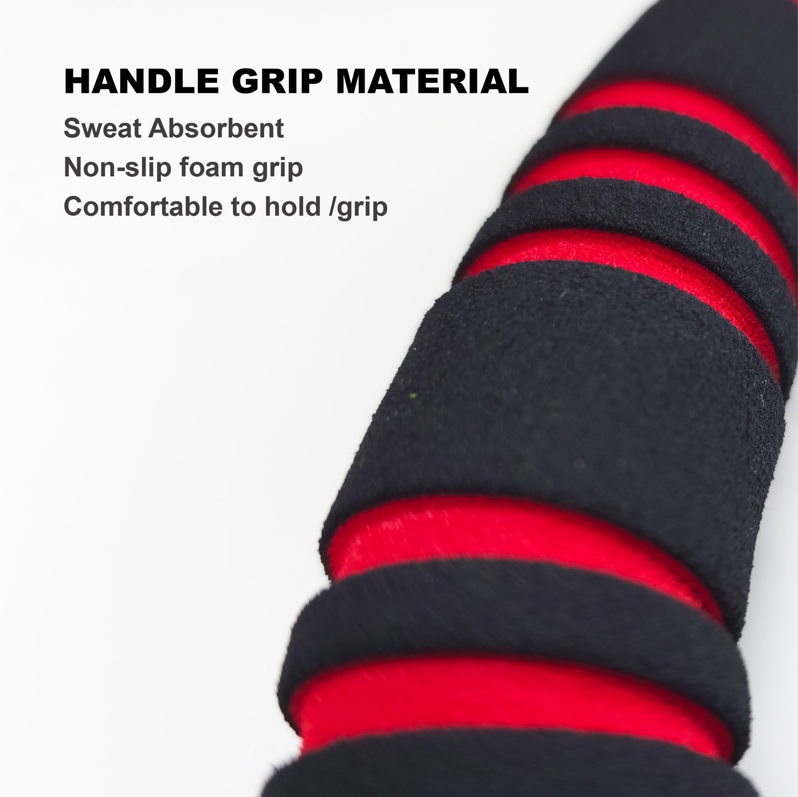 Sweat-absorbent, non-slip foam grips provide a comfortable and secure hold.