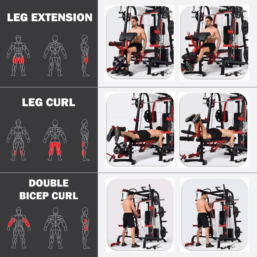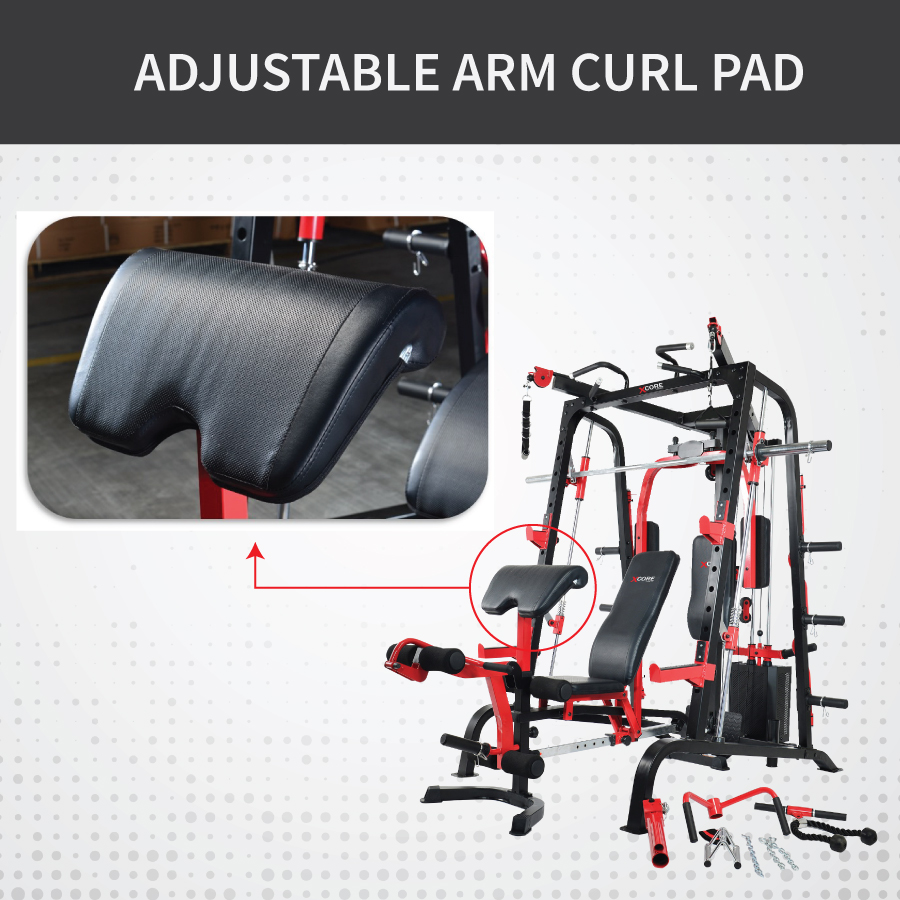 Adjustable Arm Curl Pad | Backrest Pad | Metal Shield | Barbell Holder | Leg Developer | 2 Weight Plate Storage | Olympic Bar Storage