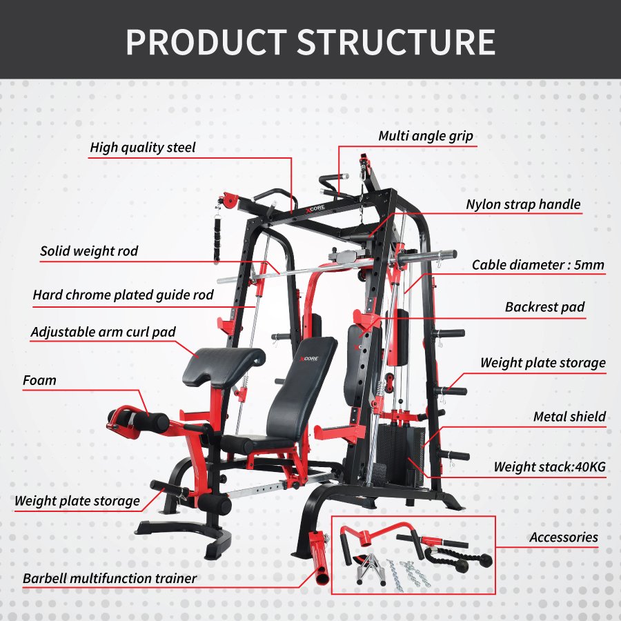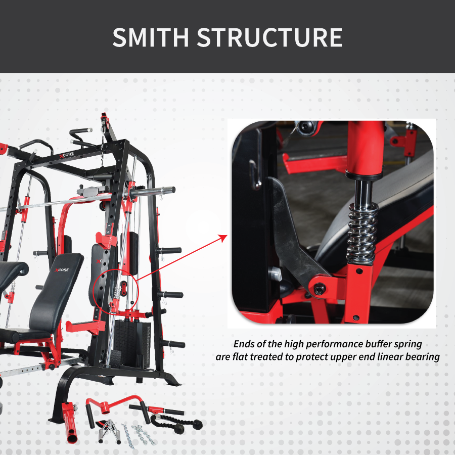 The Smith Cage XTECH-Z2+ is a multi-functional, semi-commercial grade training system engineered for strength, versatility, and precision. With its high-quality steel frame, smooth linear bearing system, and integrated cable crossover, it’s designed to deliver a full-body workout in one compact, high-performance unit — ideal for serious fitness enthusiasts and home gym setups.