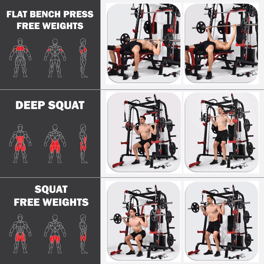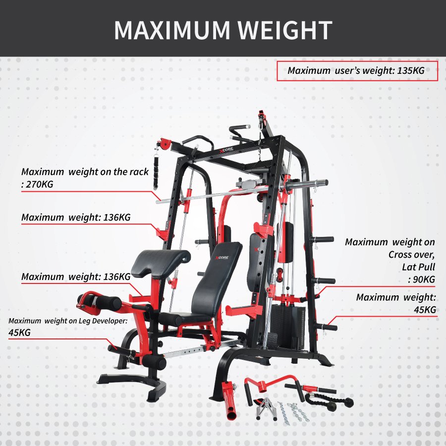 - Smith Rack: 270 kg