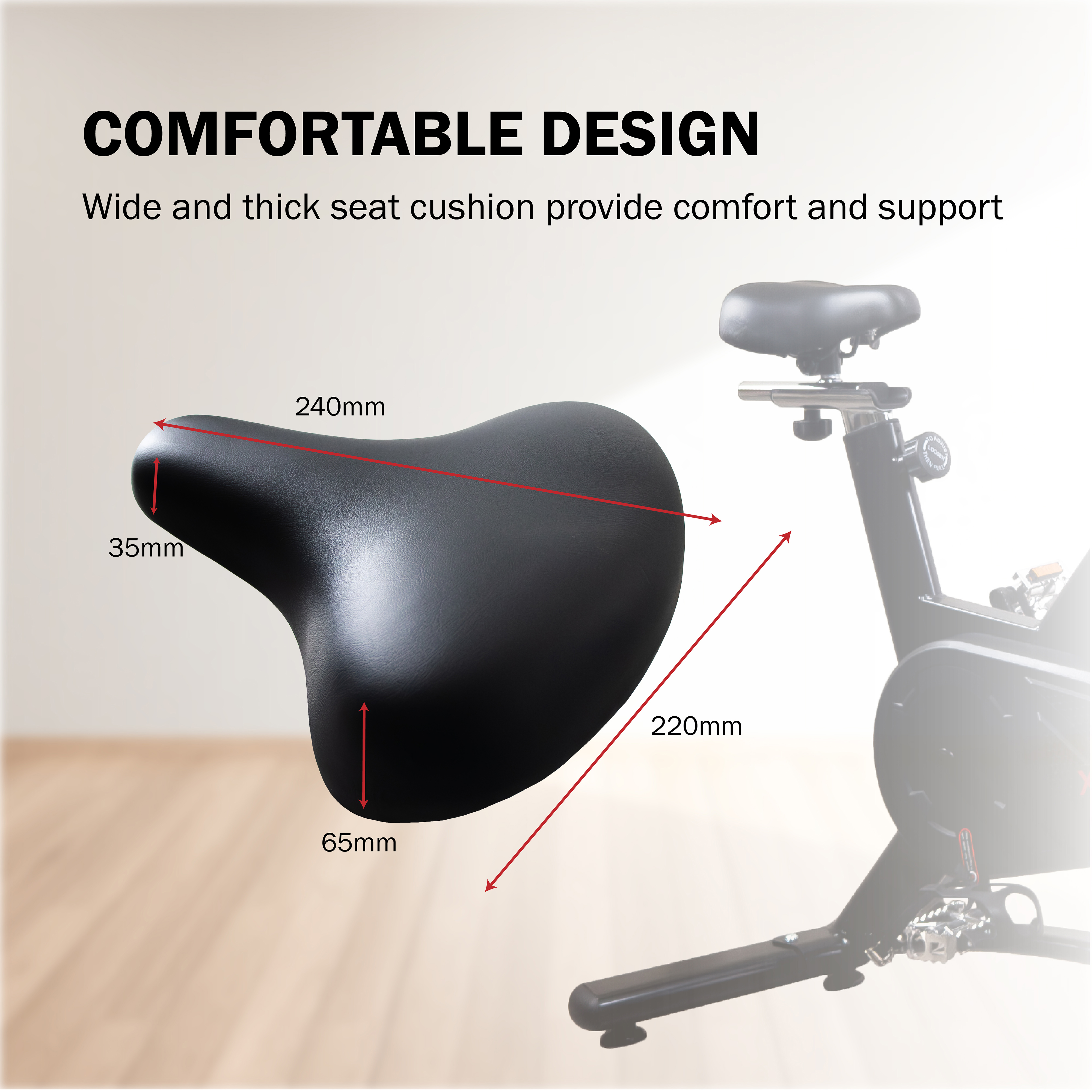 Extra comfort with 240 × 220 × 65 mm cushioning