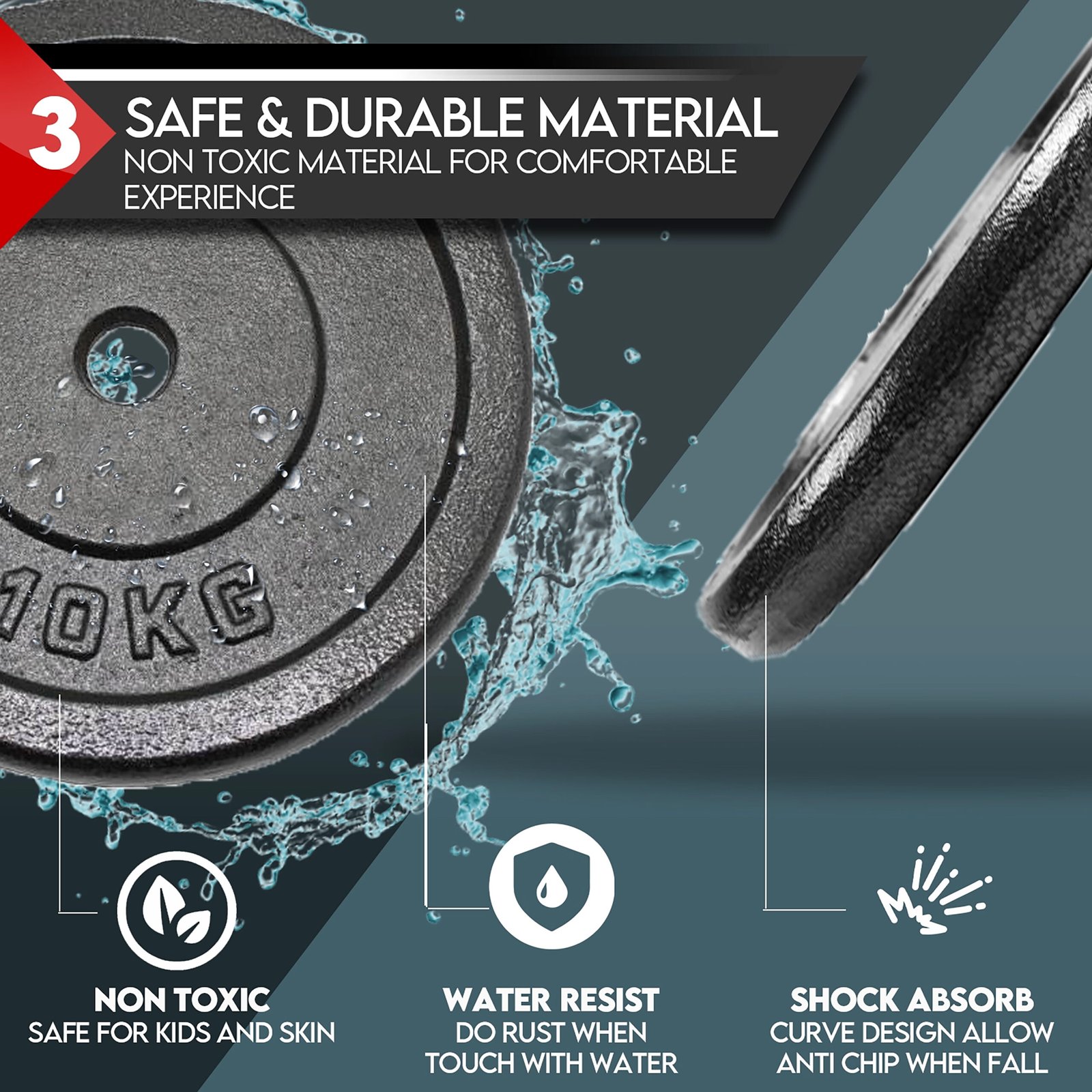 Made with non-toxic, water-resistant material that is safe for skin contact and resists rusting or chipping upon impact.