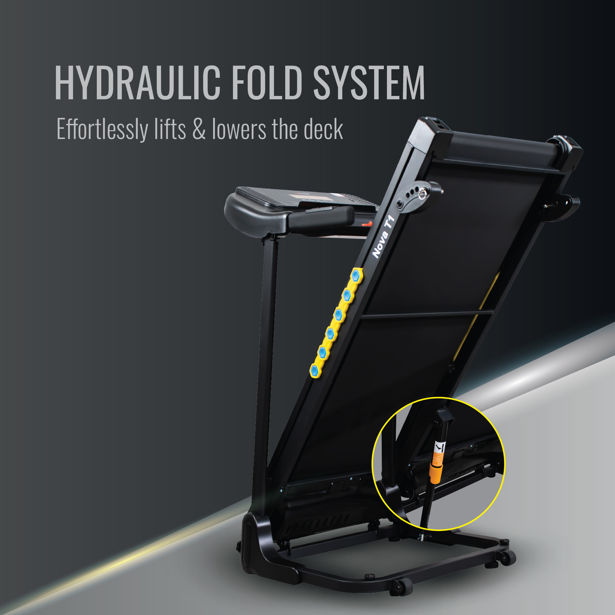 Effortlessly lifts and lowers the deck for safe and convenient storage.