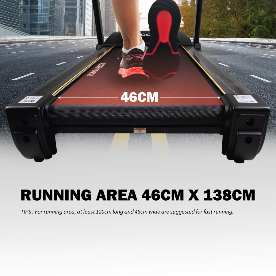 1380mm (L) × 460mm (W) — spacious and stable; suitable for fast running.