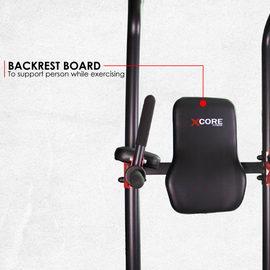 Cushioned back pad supports your posture during leg raises and ab exercises.