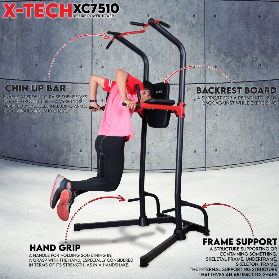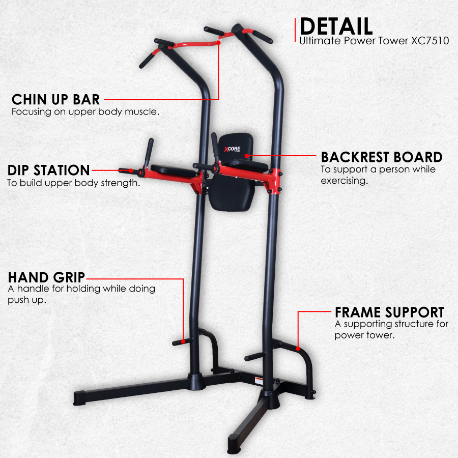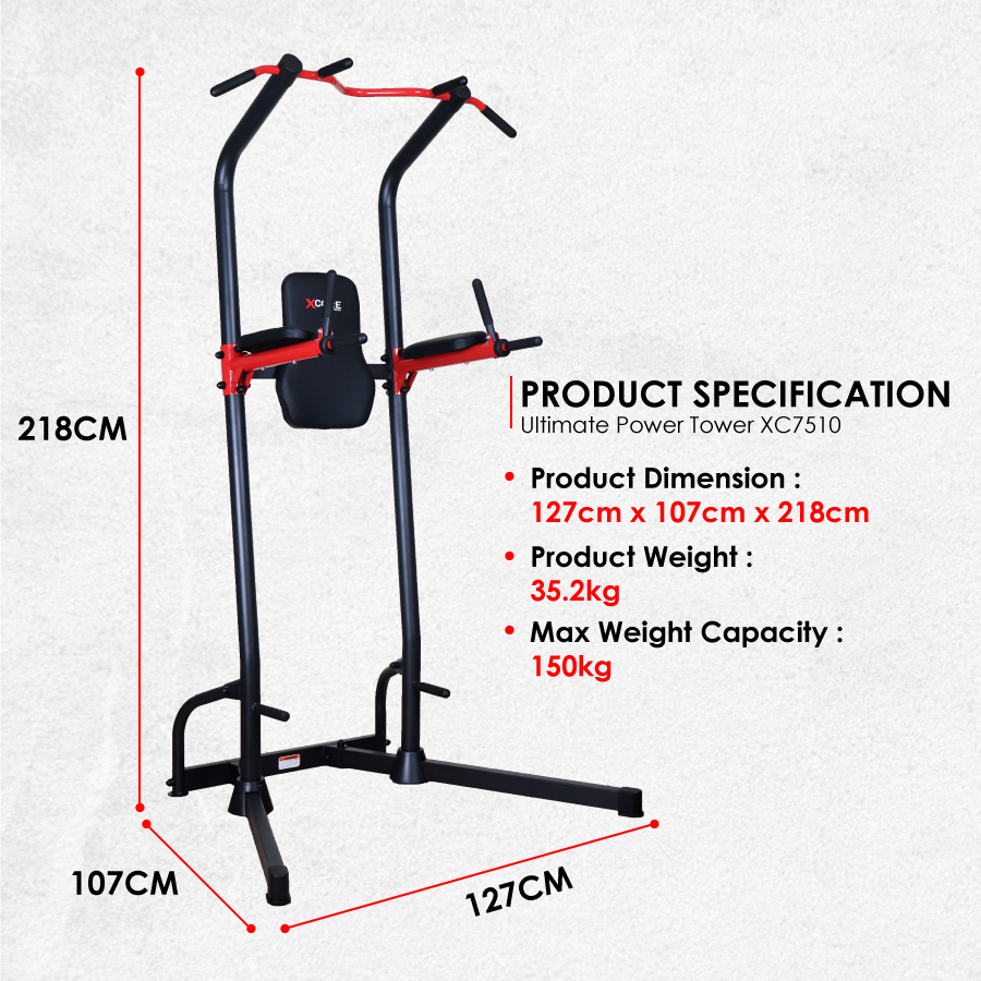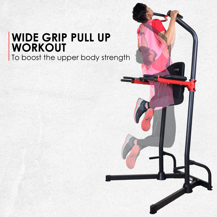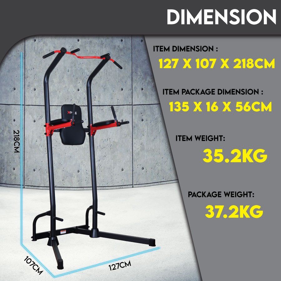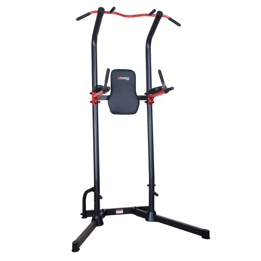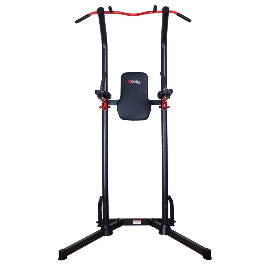 Integrates a chin-up bar, dip station, push-up handle, and leg raise station — perfect for a complete upper body and core workout.