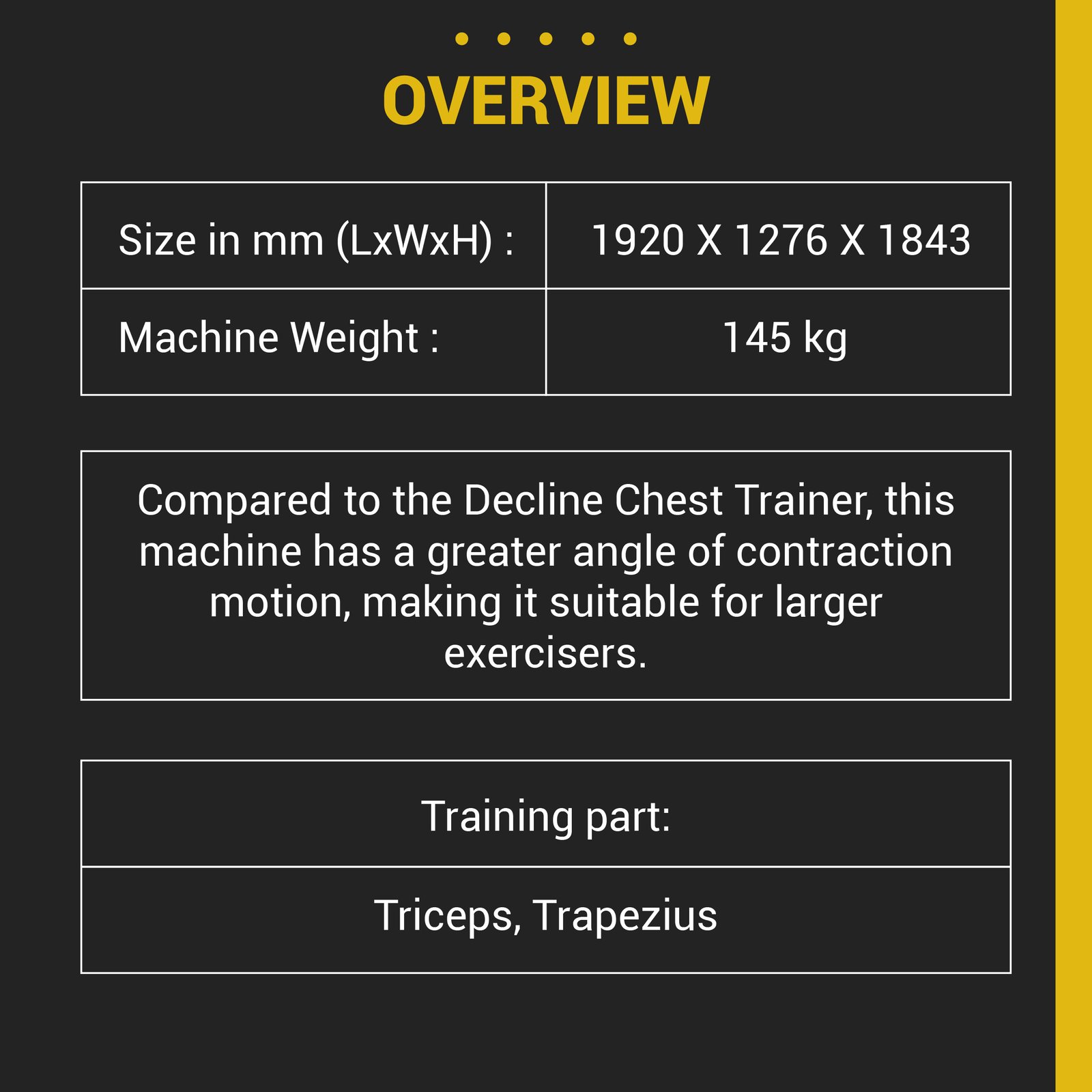 Targets the chest with a natural forward path for better engagement and muscle contraction.