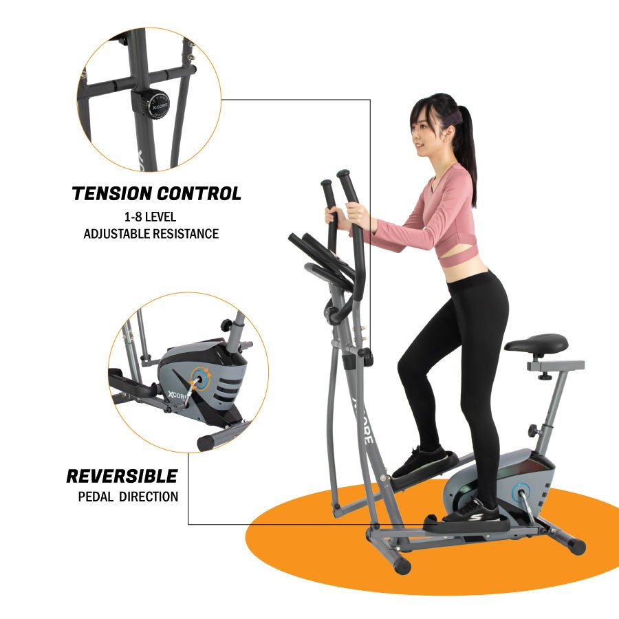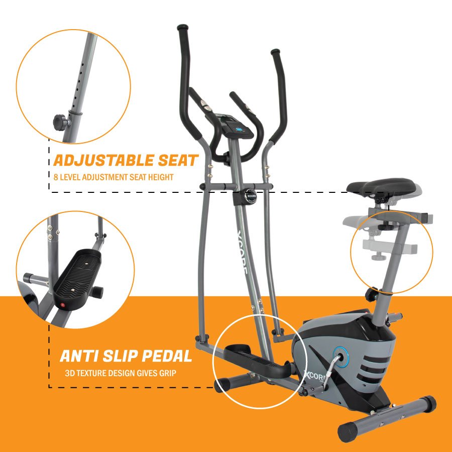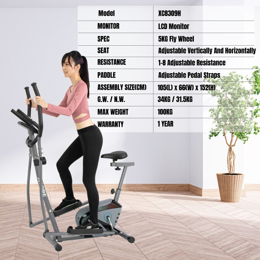 The XCORE Elliptical Bike XC8309H combines the benefits of jogging and cycling in one compact, dual-function trainer. Designed for home users seeking efficient full-body workouts, it features smooth magnetic resistance, an adjustable seat, and ergonomic anti-slip pedals for a comfortable and stable training experience.