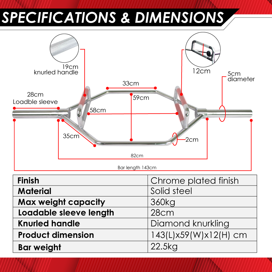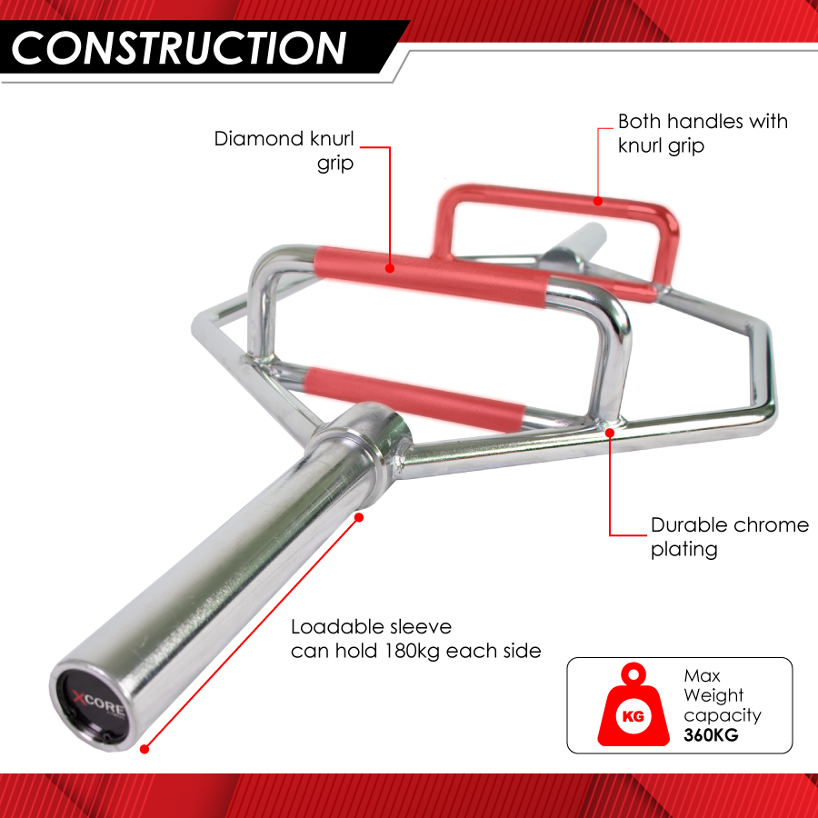 The hexagonal design centers the load around your body, reducing lower back strain and promoting better form.