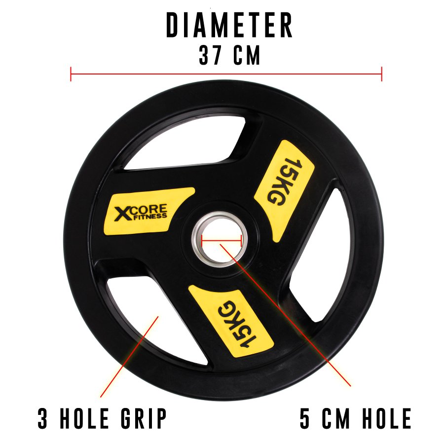 The XCORE Premium Olympic Tri-Grip Rubberised Weight Plate (15kg) combines durability, functionality, and safety — designed to deliver a smooth and reliable training experience for all strength levels. With its solid construction and rubber-coated finish, it’s ideal for both home and commercial gym environments.