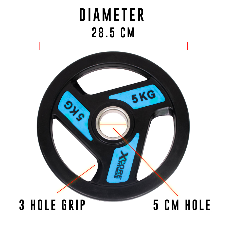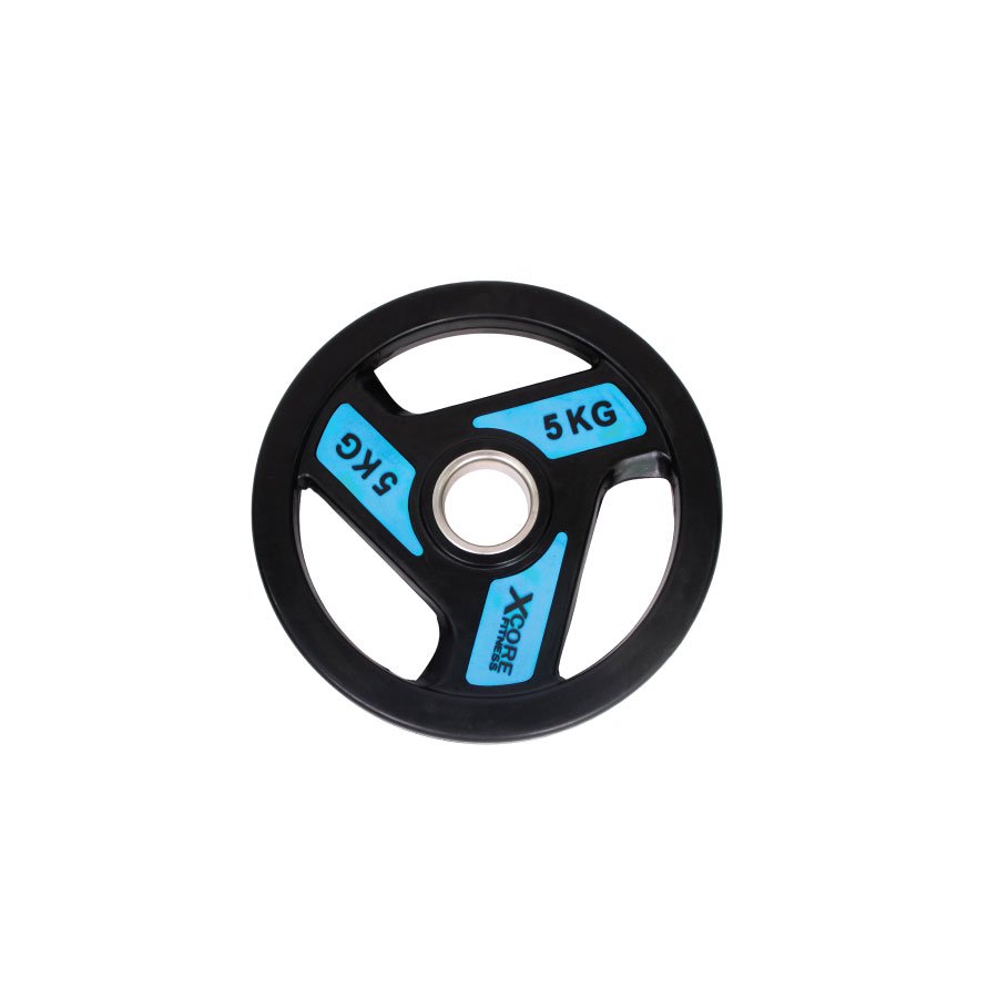 The XCORE Premium Olympic Tri-Grip Rubberised Weight Plate (5kg) is a compact and durable plate designed for versatility and ease of use. With its protective rubber coating and ergonomic tri-grip design, it offers a secure, comfortable grip and reliable performance — ideal for both beginners and experienced lifters.